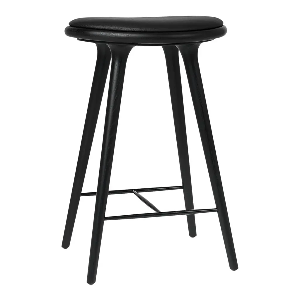 The Mater High Stool is designed by the Danish architect duo Space Copenhagen and regarded as a "New Danish Classic". It is a high stool that can be used in multiple settings and for everyday use. It is crafted in various materials with sustainable and socially responsible methods. With its organic yet minimalist style, this bar stool is suitable for both residential and commercial use. The wood is FSC certified - the label for responsible forestry - with a water-based stain. The upholstery is genuine leather.