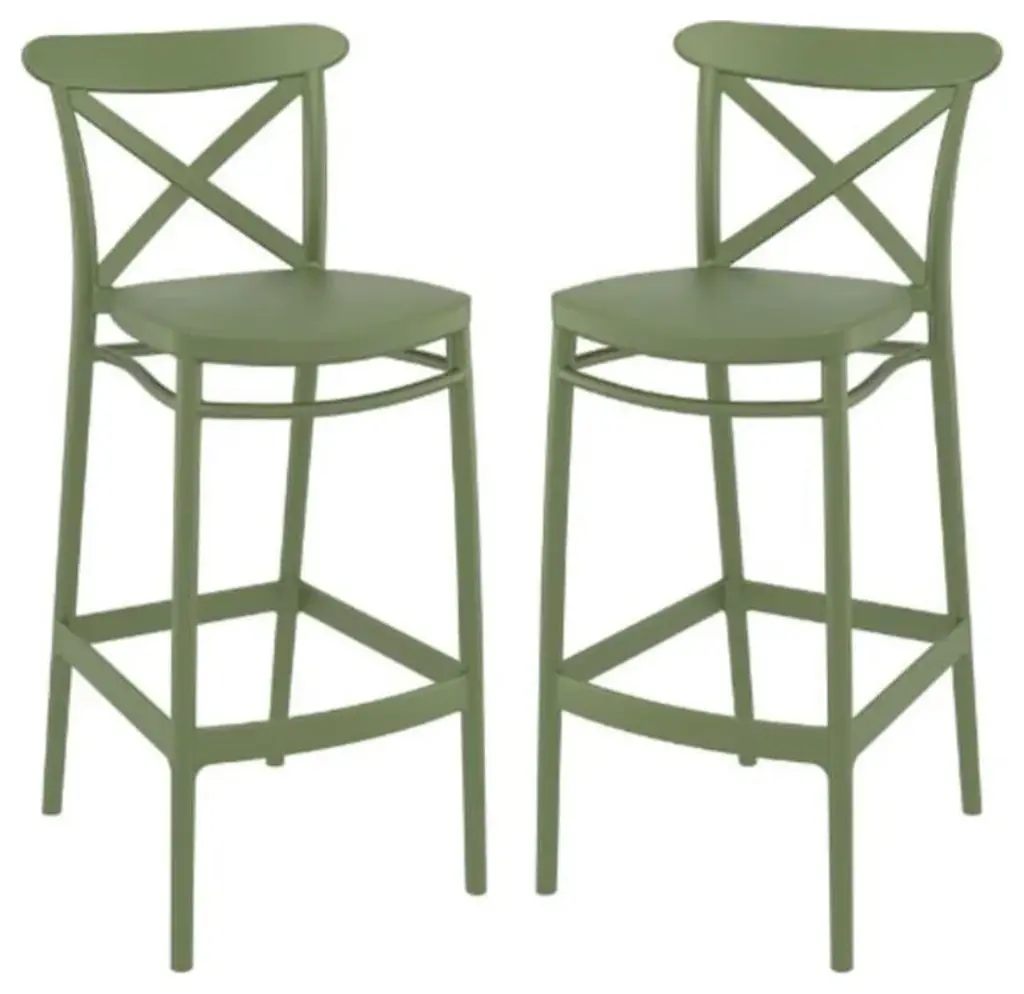 Home Square Cross Indoor Outdoor Bar Stool In Olive Green - Set Of 2