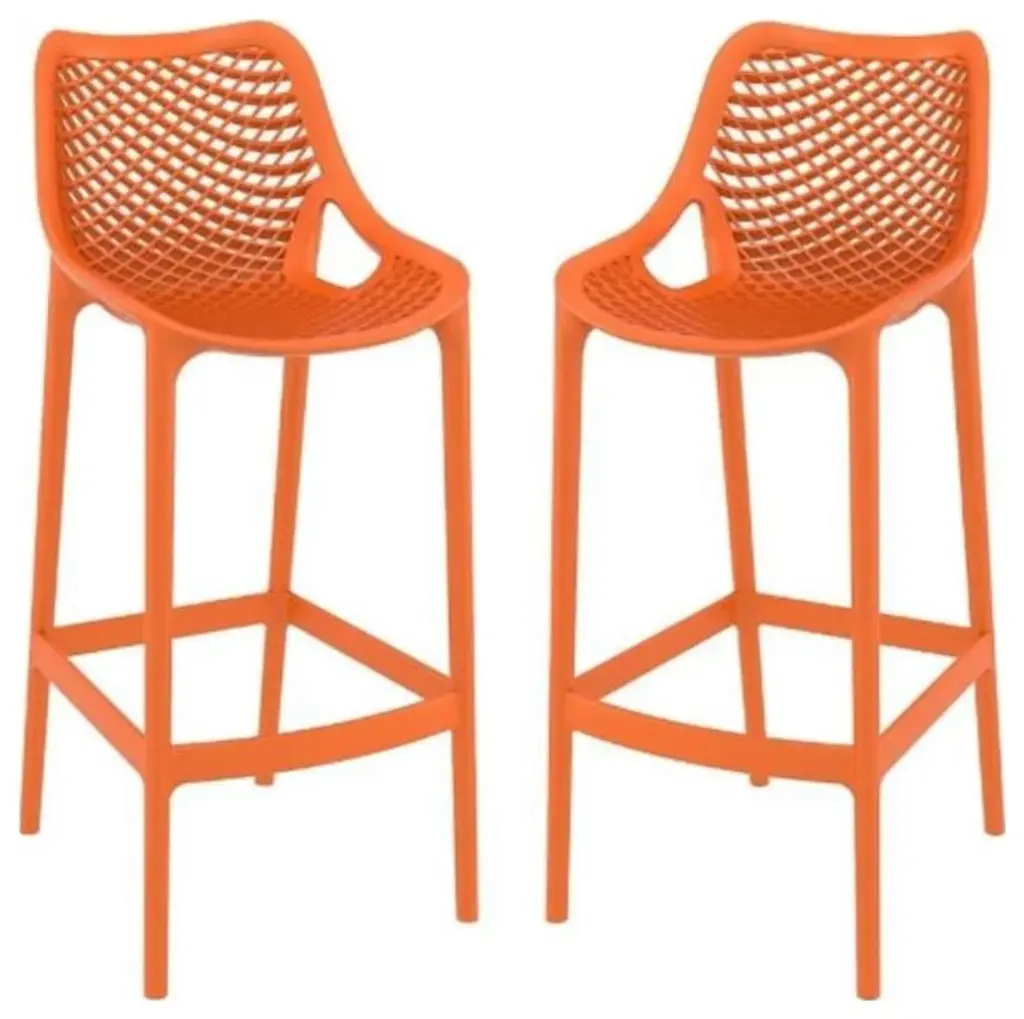 Included Items:Patio Bar Stool in Orange x 2For quicker processing, your order could be split into separate packages.Patio Bar Stool in OrangeThe Home Square Bar Stools feature a modern, comfortable design. Made from commercial grade polypropylene resin with gas injection molded legs. Suitable for indoors and outdoors. Perfect for heavy use areas. Suitable for restaurants, cafes and hotels. bar chs are not stackable.Features:Finish: OrangeOverall Stool Dimensions: 41.3" H x 17.7" W x 21" DMaterials: Commercial Grade PolypropyleneSeat - 29.5" HExtremely durable for outdoor temperatures and conditionsResidential Use - 2 Years Limited WarrantyBeautiful U.V. Resistant, Soft Pastel FinishCommercial Use - 1 Year Limited WarrantyPerfect for heavy use in any indoor or outdoor areasEasy to keep clean