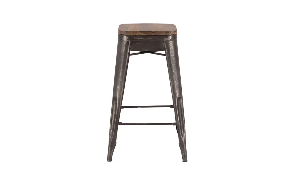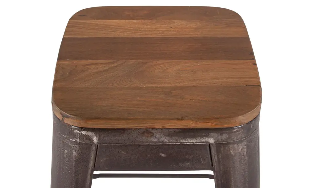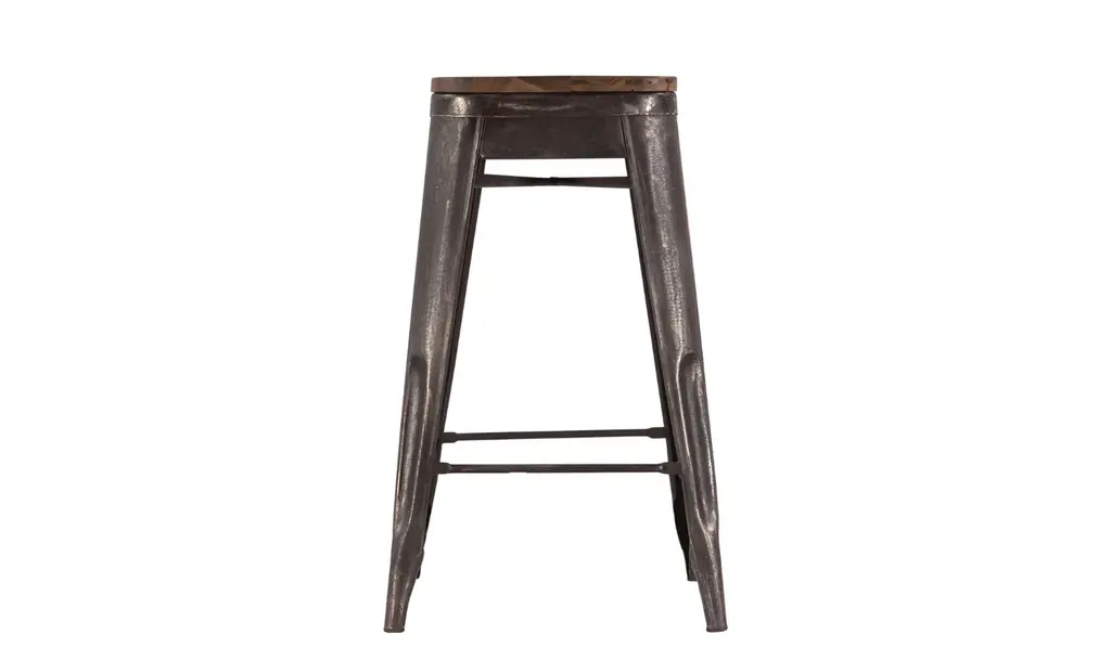 Htd Eiffel Iron Base Barstool With Teakwood Top