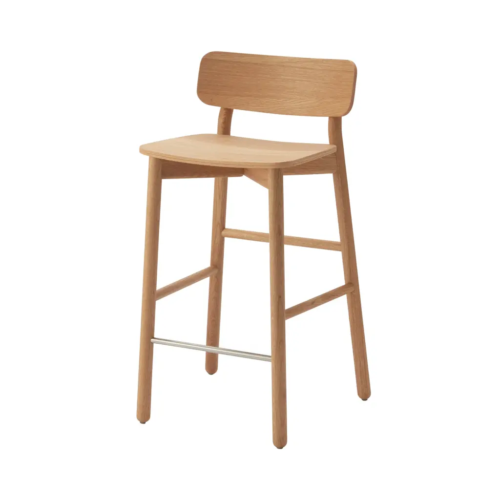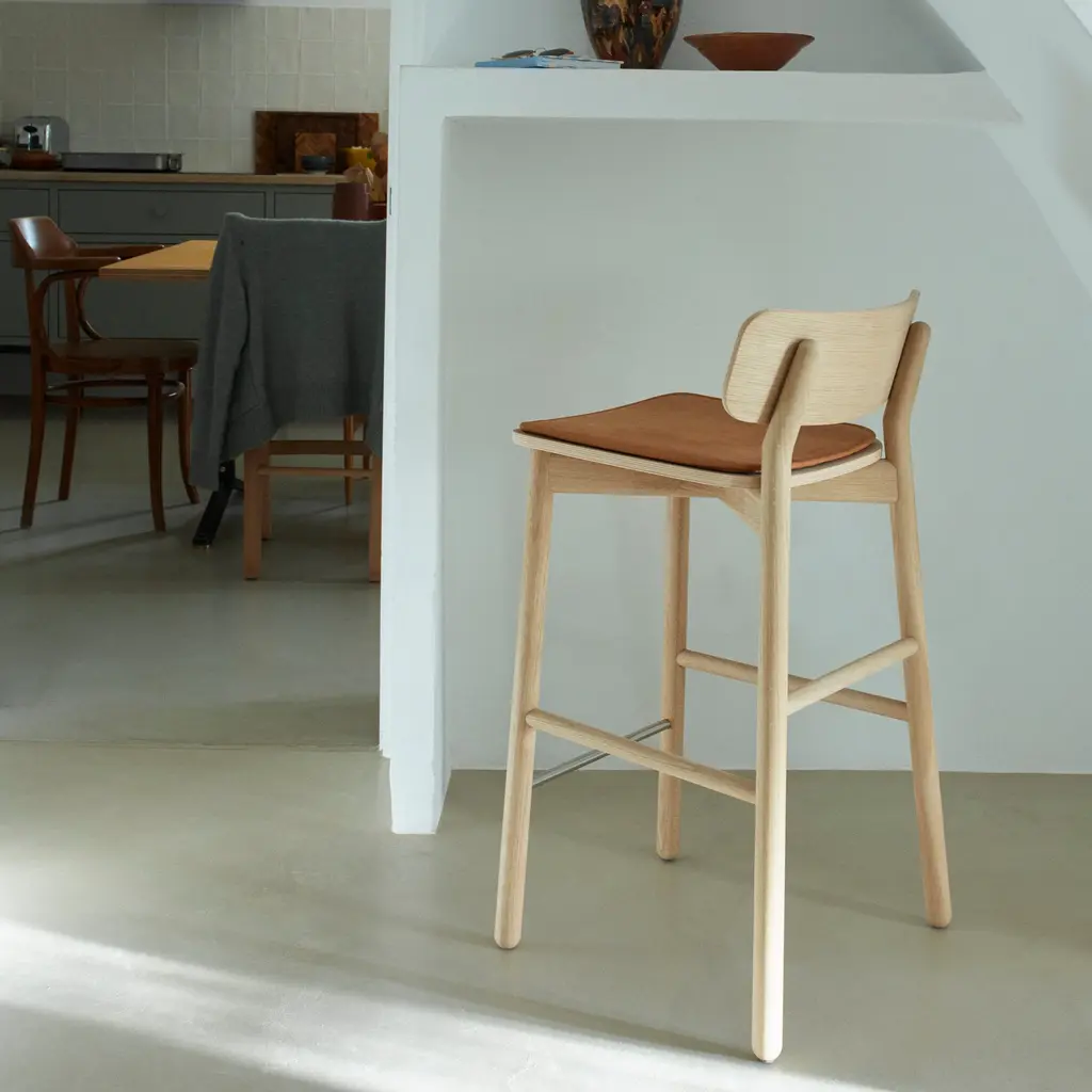 Simple yet robust, this barstool version follows the same lines as the Hven series’ armchair, with its curved seat and backrest and pole-style legs. Named for the historic island in Øresund, the strait between Denmark and Sweden, designer Anton Björsing crafts his seating in