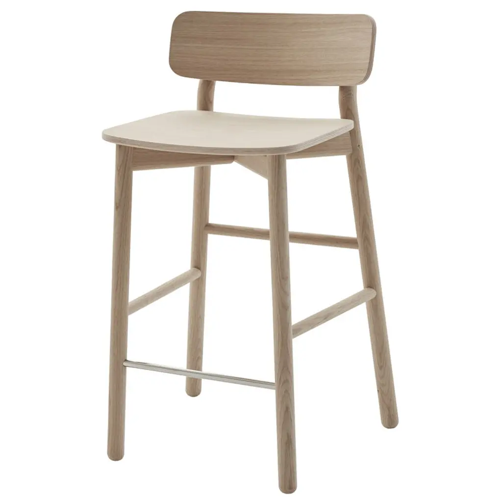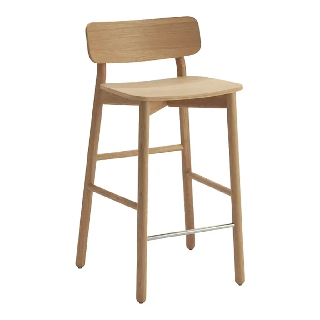 The Hven Bar Stool from Fritz Hansen combines light, Nordic design with robust elegance, offering the same open and inviting comfort as the dining chair. Crafted from 100% FSC-certified oak, its extra-long legs are reinforced with stainless steel transverse poles, providing added strength and a convenient footrest. With its minimalist style and durability blend, this bar stool is both functional and aesthetically pleasing, making it a perfect choice for kitchens, bars, or dining spaces.