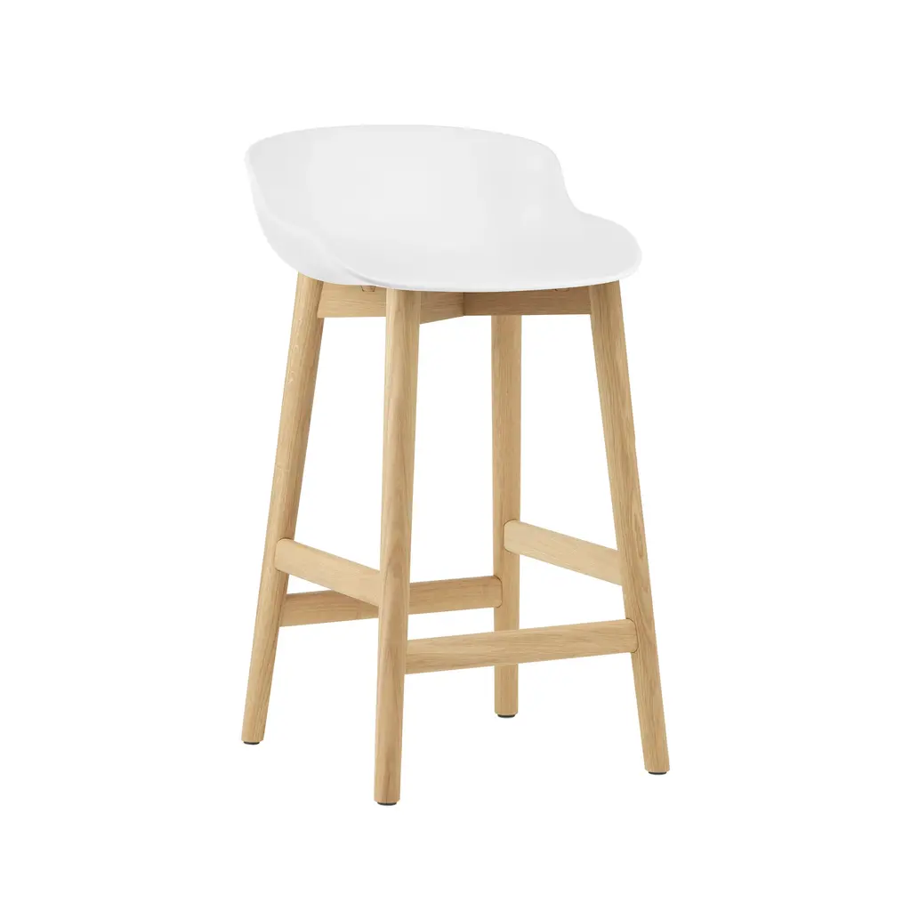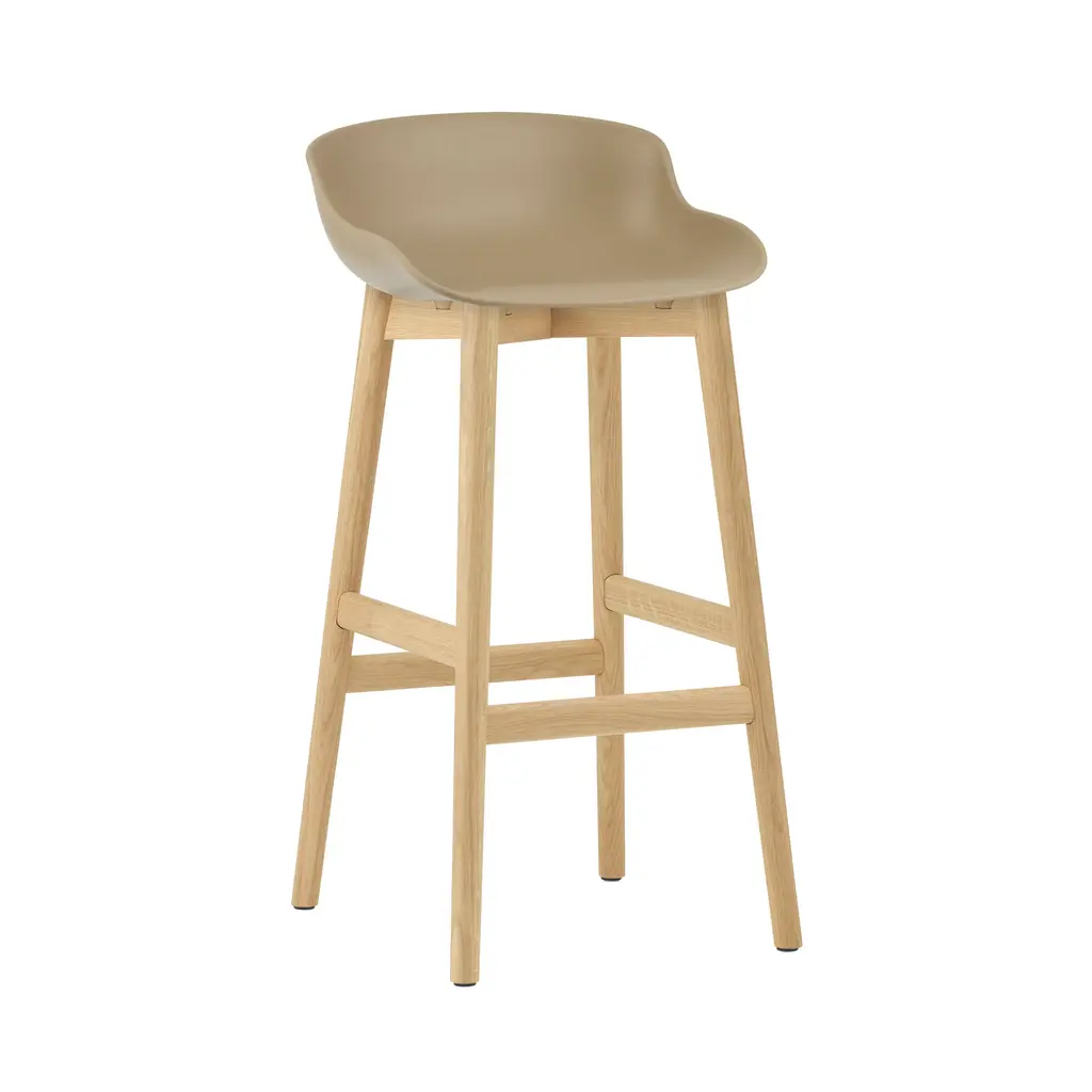 Normann Copenhagen's barstool variation shares the organic sculpted look of designer Simon Legald's furniture series inspired by the Danish notion of. Offered in both bar and counter heights, Hyg focuses on sublime comfort as well as eye appeal with its ergonomically molded shell seat in a range of amenable hues. The solid-oak base has a built-in footrest and comes with a lacquered finish in either natural or black-painted versions.