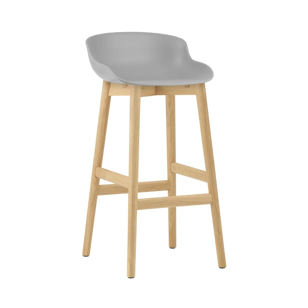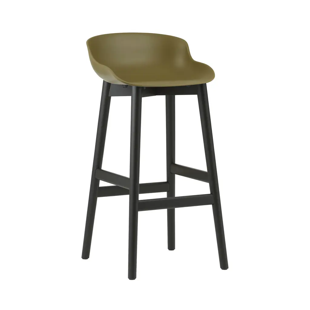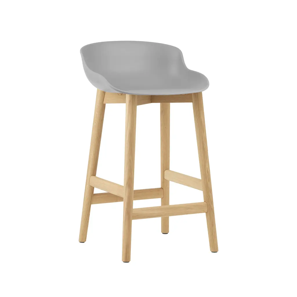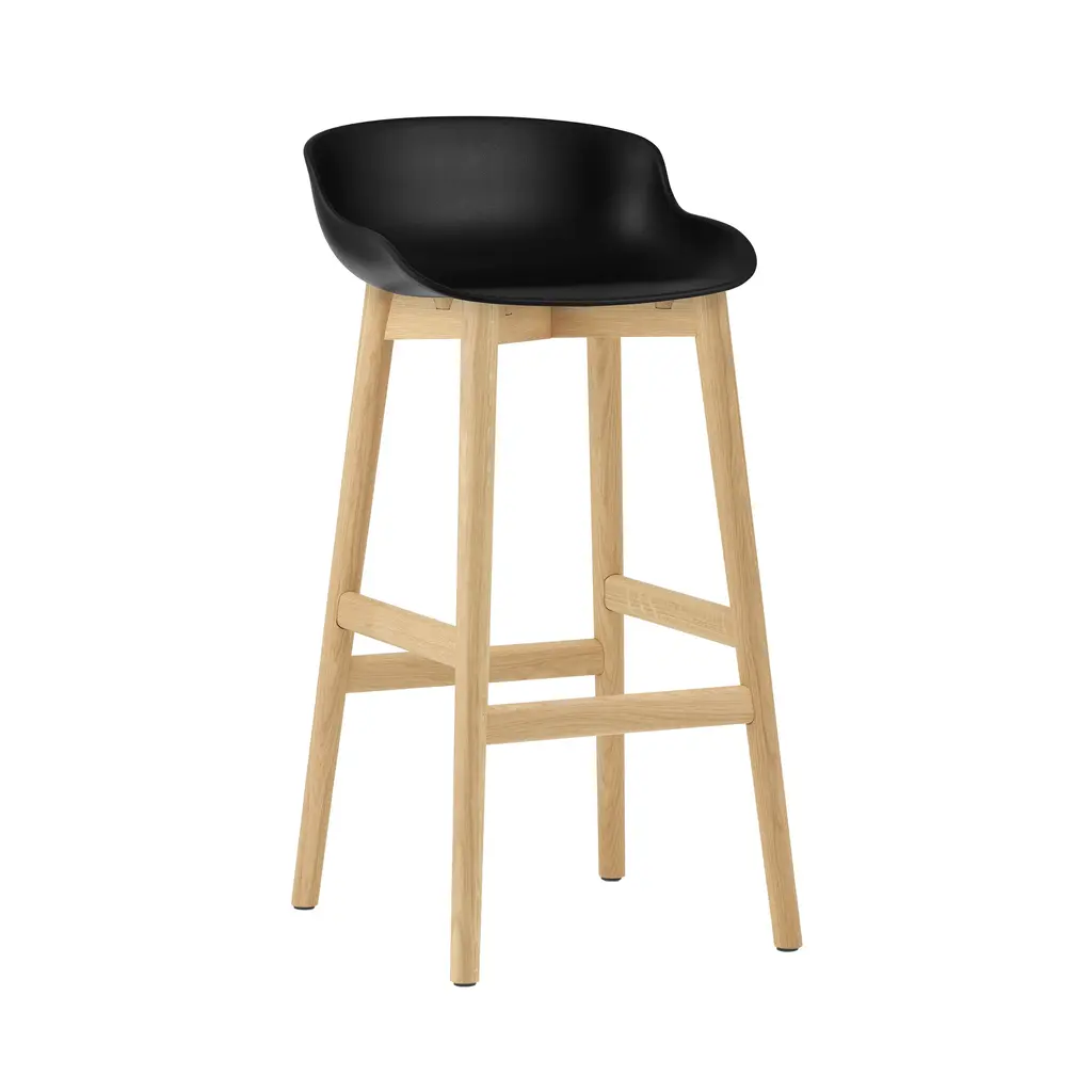 Normann Copenhagen's barstool variation shares the organic sculpted look of designer Simon Legald's furniture series inspired by the Danish notion of. Offered in both bar and counter heights, Hyg focuses on sublime comfort as well as eye appeal with its ergonomically molded shell seat in a range of amenable hues. The solid-oak base has a built-in footrest and comes with a lacquered finish in either natural or black-painted versions.