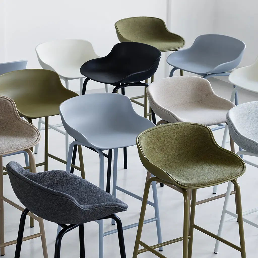Inspired by Danish hygge, designer Simon Legald has created the Hyg furniture series. When the series was introduced in 2018, it consisted of a 2-seater sofa, lounge chairs and a footstool. In 2020, the range expands with a chair and barstool that share the characteristics of the lounge series: the hearty, organic curves designed with a focus on sublime comfort. The concept of hygge is all about feeling good: security, warmth and comfort all form part of its DNA, and it is precisely these qualities that provide the template for the Hyg collection. With the new models, the range and the coziness further unfolds, and new possibilities arise of creating coherent environments with both dining and lounge areas. "The moments where we sit down together, immerse ourselves in conversation and share a meal; for me this is where the feeling of hygge really peaks. Thus, it seemed only natural that the Hyg range should also provide the setting for moments like these. The feeling of hygge is not only linked to the visual experience of the design; it lies in the overall sensuous experience. A lot of effort has gone into sculpting the shape to provide rest and support for the human body, to make it comfortable to sit in, basically," Simon Legald tells us.