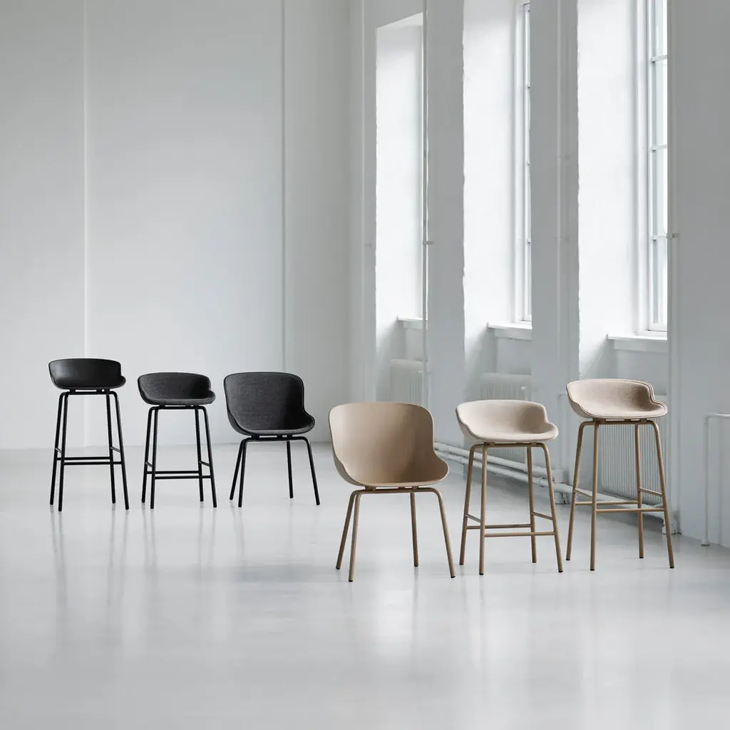 Inspired by Danish hygge, designer Simon Legald has created the Hyg furniture series. When the series was introduced in 2018, it consisted of a 2-seater sofa, lounge chairs and a footstool. In 2020, the range expands with a chair and barstool that share the characteristics of the lounge series: the hearty, organic curves designed with a focus on sublime comfort. The concept of hygge is all about feeling good – security, warmth and comfort all form part of its DNA, and it is precisely these qualities that provide the template for the Hyg collection. With the new models, the range – and the coziness – further unfolds, and new possibilities arise of creating coherent environments with both dining and lounge areas. "The moments where we sit down together, immerse ourselves in conversation and share a meal – for me this is where the feeling of hygge really peaks. Thus, it seemed only natural that the Hyg range should also provide the setting for moments like these. The feeling of hygge is not only linked to the visual experience of the design; it lies in the overall sensuous experience. A lot of effort has gone into sculpting the shape to provide rest and support for the human body, to make it comfortable to sit in, basically.", Simon Legald tells us.