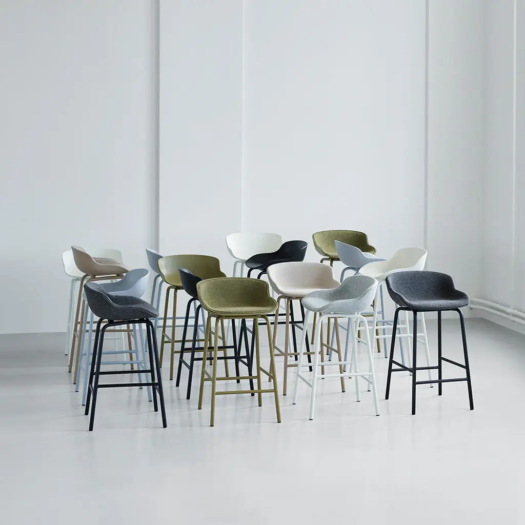 Inspired by Danish hygge, designer Simon Legald has created the Hyg furniture series. When the series was introduced in 2018, it consisted of a 2-seater sofa, lounge chairs and a footstool. In 2020, the range expands with a chair and barstool that share the characteristics of the lounge series: the hearty, organic curves designed with a focus on sublime comfort. The concept of hygge is all about feeling good – security, warmth and comfort all form part of its DNA, and it is precisely these qualities that provide the template for the Hyg collection. With the new models, the range – and the coziness – further unfolds, and new possibilities arise of creating coherent environments with both dining and lounge areas. "The moments where we sit down together, immerse ourselves in conversation and share a meal – for me this is where the feeling of hygge really peaks. Thus, it seemed only natural that the Hyg range should also provide the setting for moments like these. The feeling of hygge is not only linked to the visual experience of the design; it lies in the overall sensuous experience. A lot of effort has gone into sculpting the shape to provide rest and support for the human body, to make it comfortable to sit in, basically.", Simon Legald tells us.