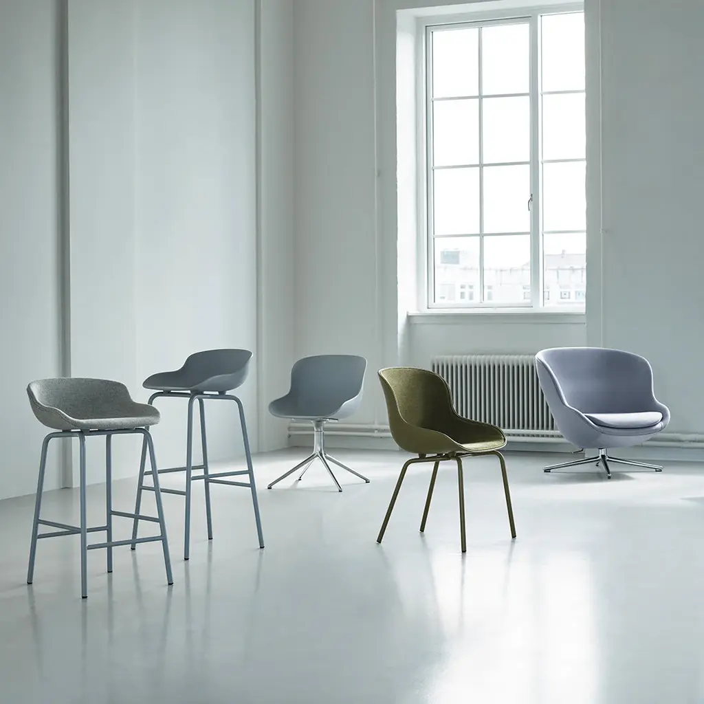 Inspired by Danish hygge, designer Simon Legald has created the Hyg furniture series. When the series was introduced in 2018, it consisted of a 2-seater sofa, lounge chairs and a footstool. In 2020, the range expands with a chair and barstool that share the characteristics of the lounge series: the hearty, organic curves designed with a focus on sublime comfort. The concept of hygge is all about feeling good – security, warmth and comfort all form part of its DNA, and it is precisely these qualities that provide the template for the Hyg collection. With the new models, the range – and the coziness – further unfolds, and new possibilities arise of creating coherent environments with both dining and lounge areas. "The moments where we sit down together, immerse ourselves in conversation and share a meal – for me this is where the feeling of hygge really peaks. Thus, it seemed only natural that the Hyg range should also provide the setting for moments like these. The feeling of hygge is not only linked to the visual experience of the design; it lies in the overall sensuous experience. A lot of effort has gone into sculpting the shape to provide rest and support for the human body, to make it comfortable to sit in, basically.", Simon Legald tells us.
