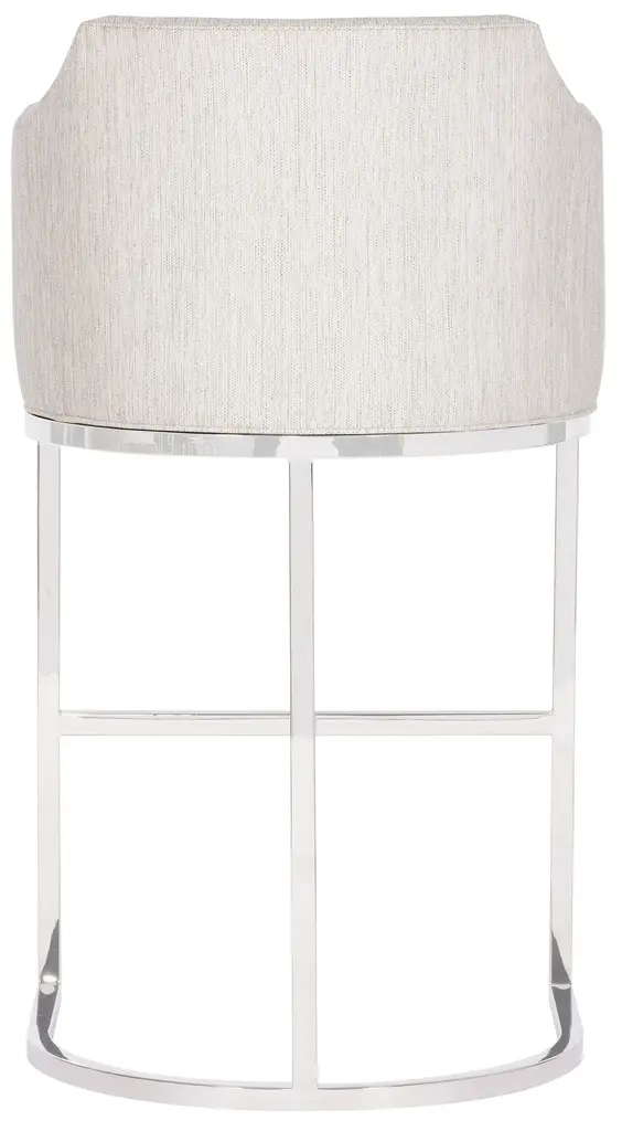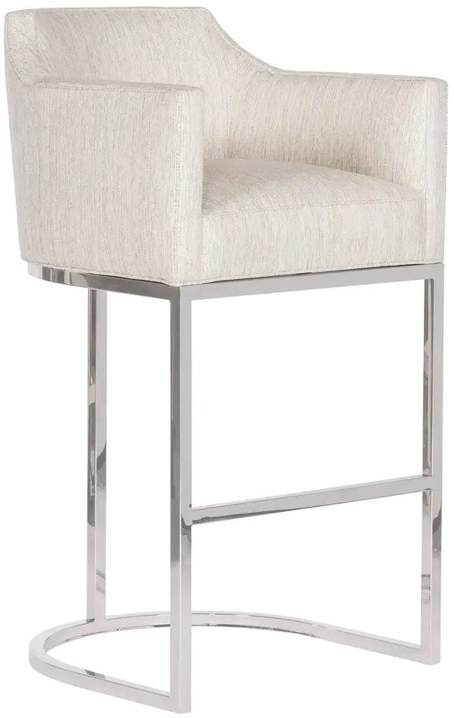Vanguard Furniture's artisans hand-apply all finishes, taking careful steps to ensure each piece has the care and attention required to enhance the natural character of the furniture. No two pieces are the same — every piece of furniture is truly unique. The Ian Bar Stool features Index Porcelain fabric with a brushed Nickel metal barrel Base.