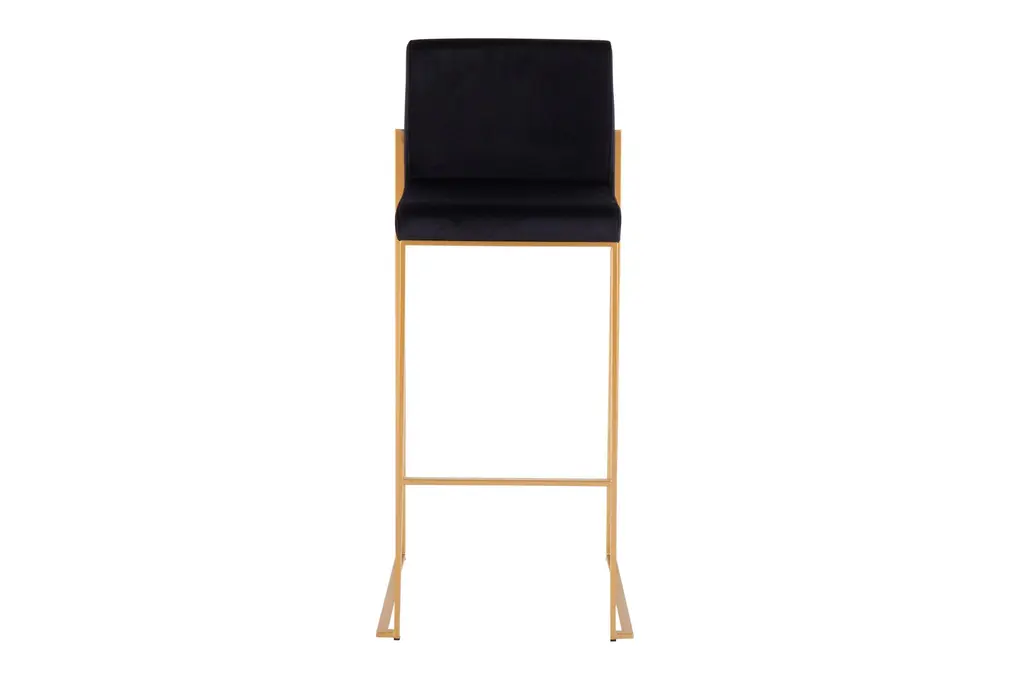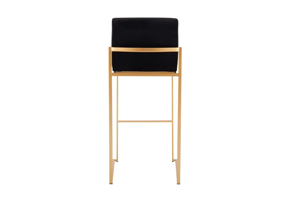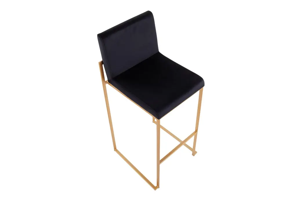 Ian Black 30" Velvet Fabric + Gold Metal Frame High Back Barstool Set Of 3 | Armless