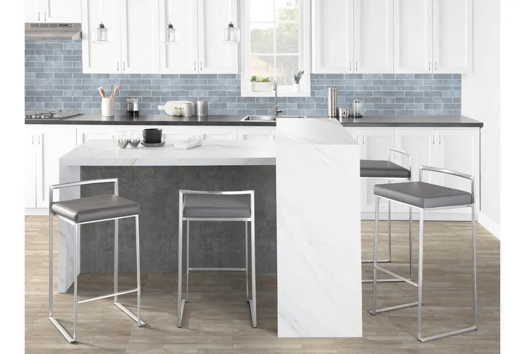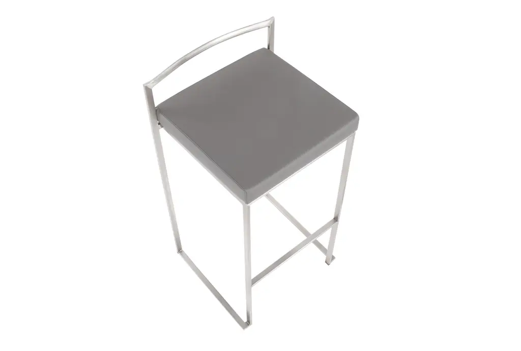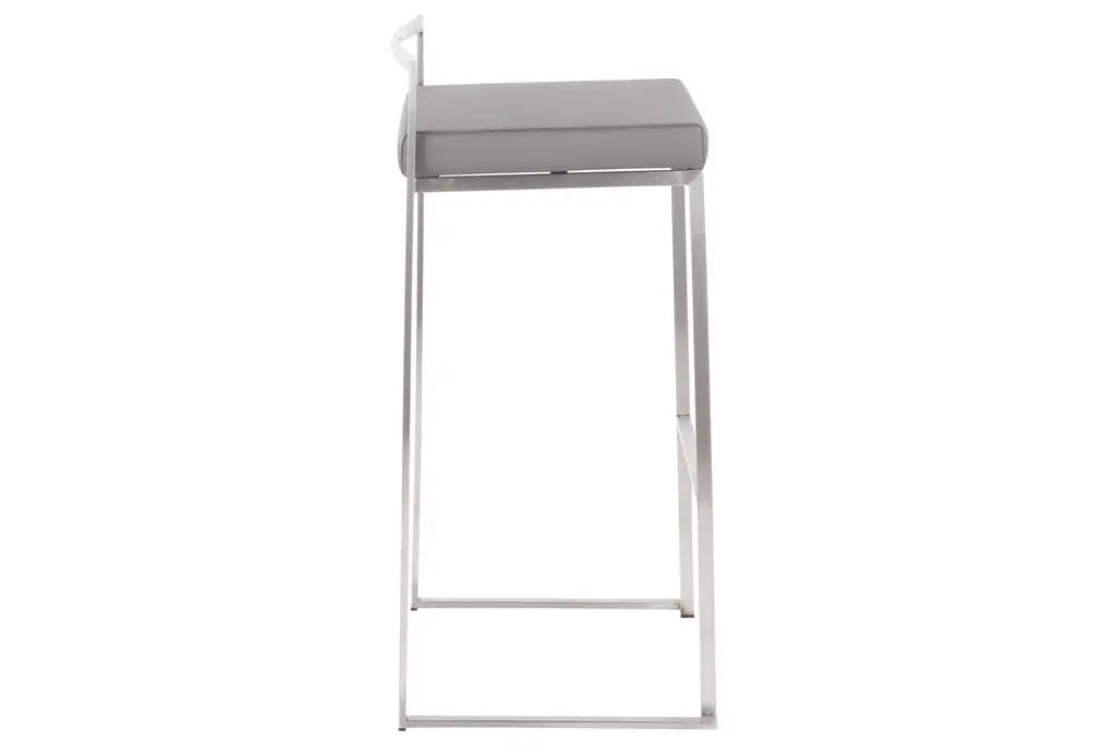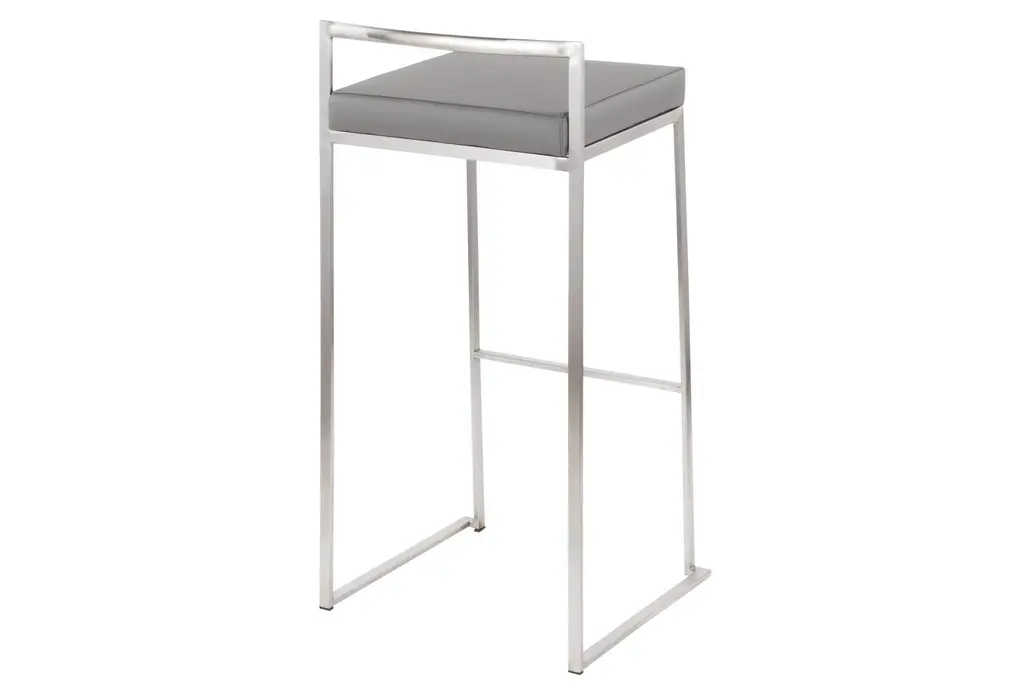 Enhance your dining room or kitchen space with the Ian Grey 30" Stackable Faux Leather + Stainless Steel Metal Barstool Set of 3. These modern barstools feature a sleek, armless design, crafted from faux leather and stainless steel metal. The stackable functionality allows for convenient storage when not in use.