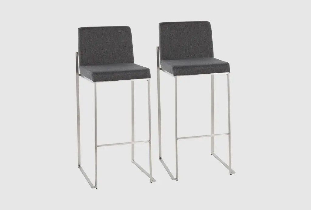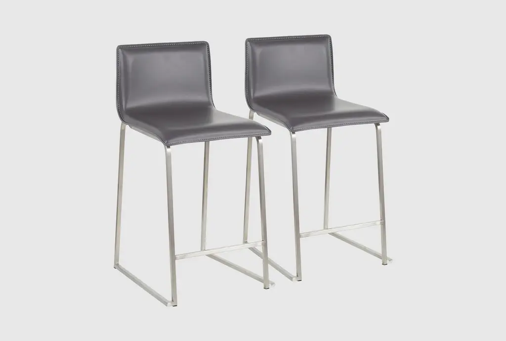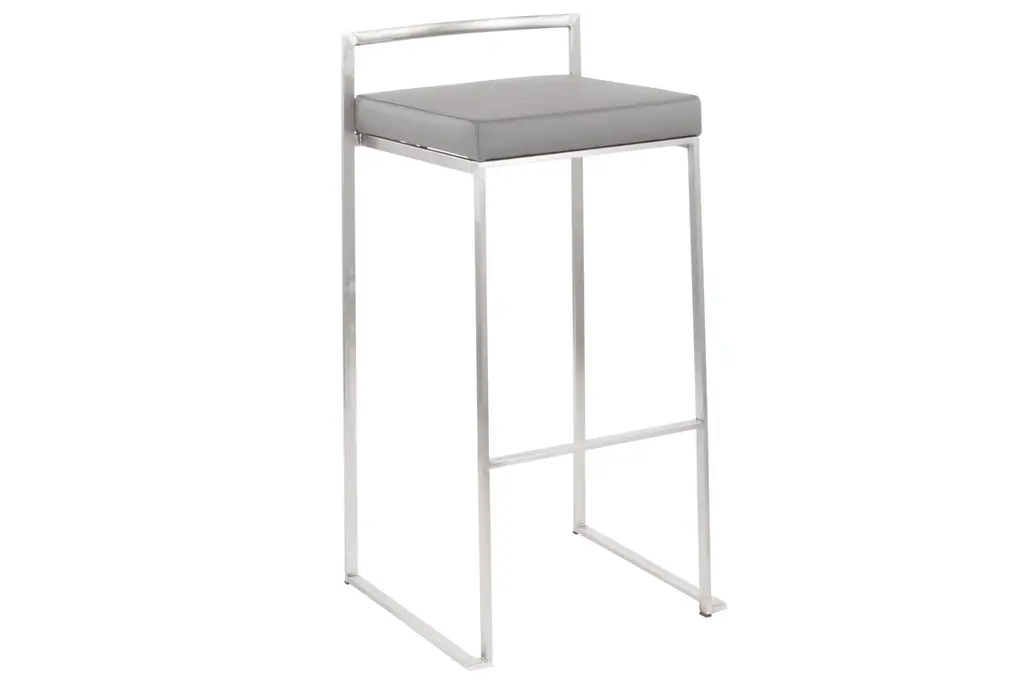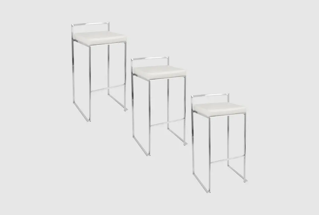 Ian Grey 30" Stackable Faux Leather + Stainless Steel Metal Barstool Set Of 3 | Armless