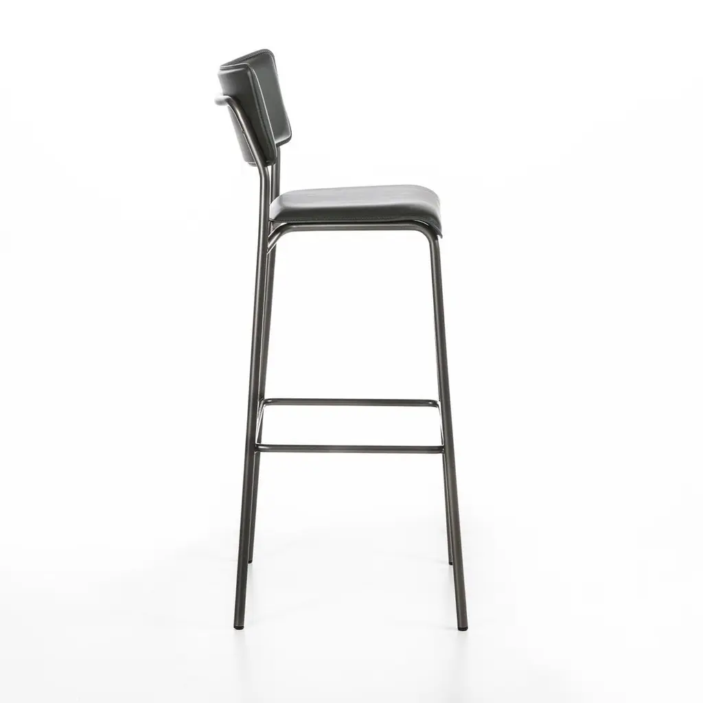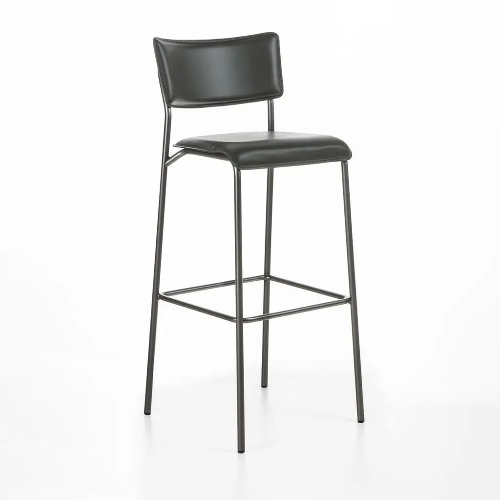 A fresh and stylish design of minimalist inspiration, this gorgeous bar stool boasts clean and essential lines highlighted with a total-white look. Boasting a sleek structure defined by cylindrical lines and fashioned of lacquered metal, the seat and backrest are both upholstered with fine white-colored leather.