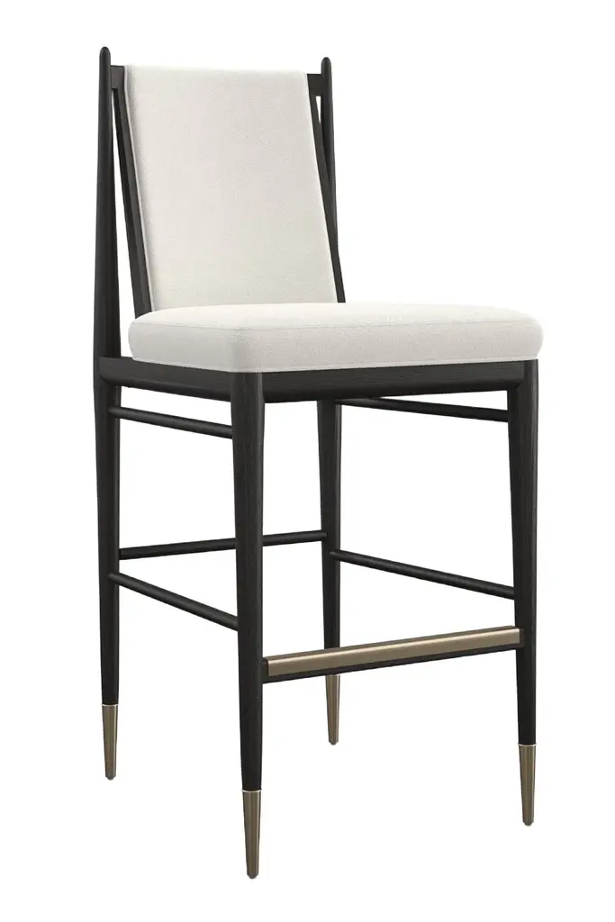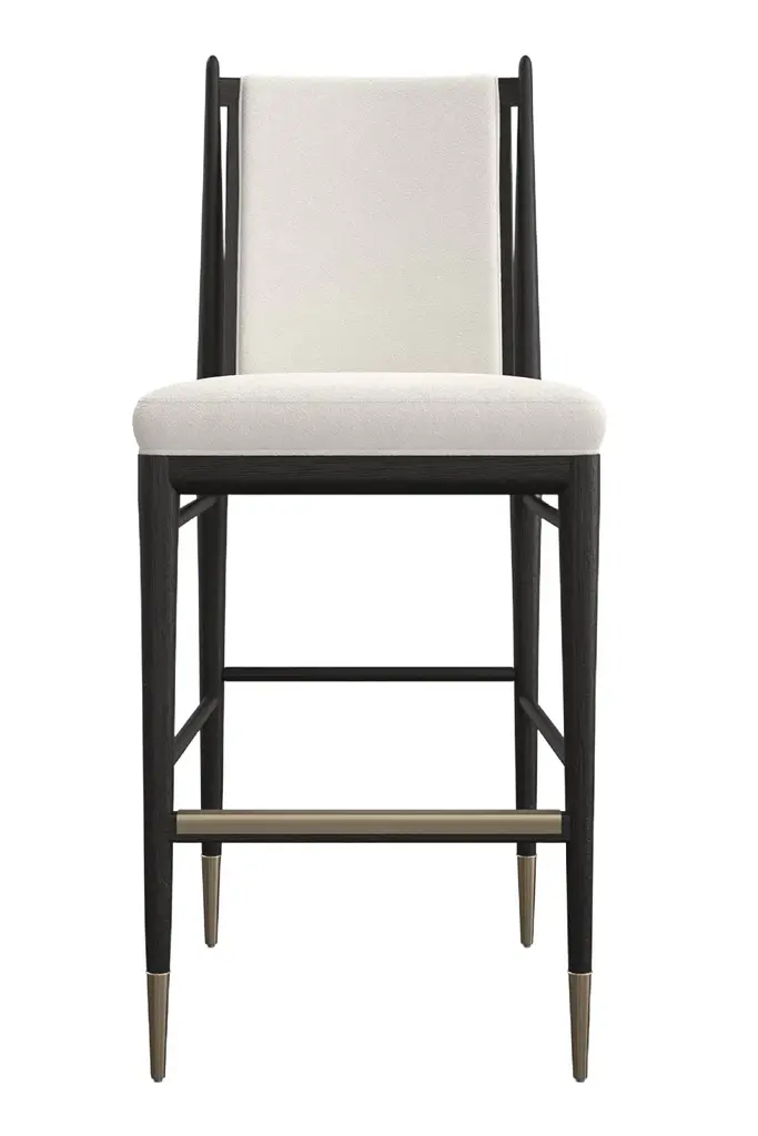 An elegant expression of materiality and form, the Unity light and dark bar stool is perfectly scaled for entertaining and the everyday. A clean-lined frame crafted in sun-drenched open grain oak sets it apart from its dark counterpart. Dressed in an ivory boucle fabric and Lucent Bronze metal ferrules, its subtle contrast brings a fresh modern aesthetic to dining and entertaining spaces. Counter height stool also available.