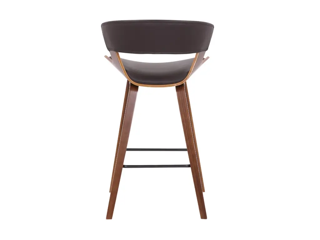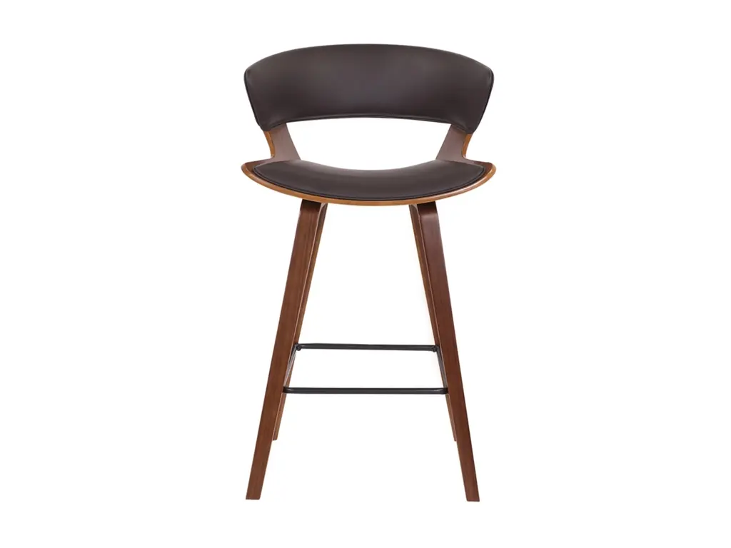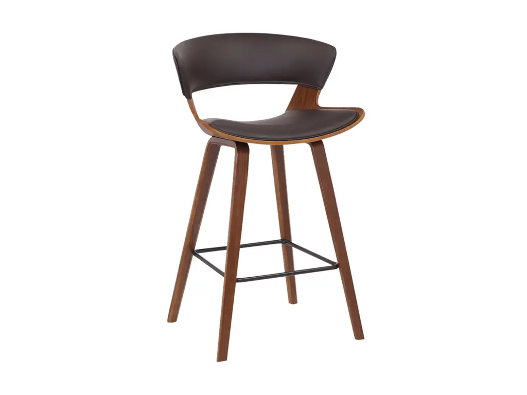 Add a work of art to your beautiful home with the Jagger counter height bar stool. This features a mid-century modern aesthetic that can blend into any home decor, providing an inviting furniture piece for you and your guests. The smooth shape and clean lines of the Jagger are accompanied by soft, sleek faux leather upholstery. The Jagger counter height bar stool is crafted with durable wood construction and incorporates a convenient square footrest for extra support. The Jagger is available in your choice of cream or brown faux leather with walnut wood finish or gray faux leather with a black brushed wood finish.