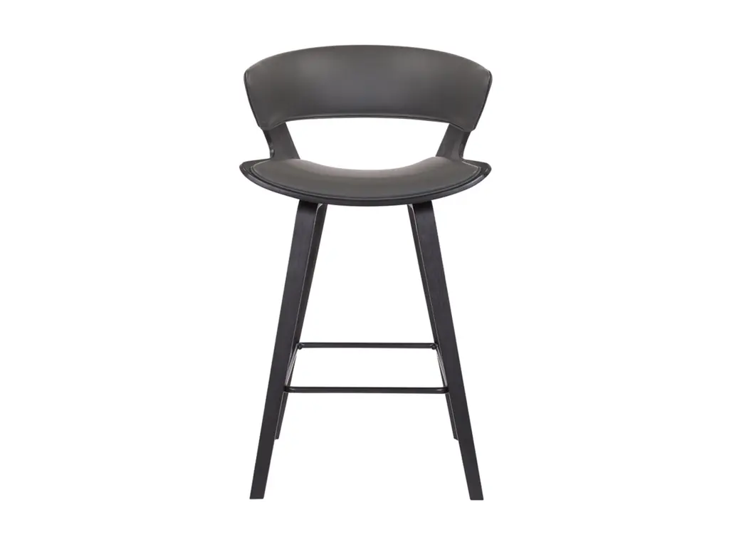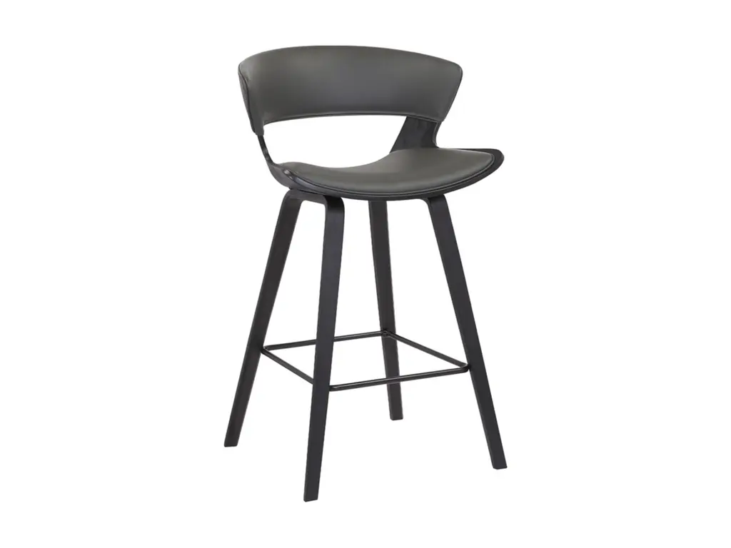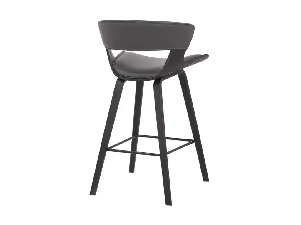Add a work of art to your beautiful home with the Jagger counter height bar stool. This features a mid-century modern aesthetic that can blend into any home decor, providing an inviting furniture piece for you and your guests. The smooth shape and clean lines of the Jagger are accompanied by soft, sleek faux leather upholstery. The Jagger counter height bar stool is crafted with durable wood construction and incorporates a convenient square footrest for extra support. The Jagger is available in your choice of cream or brown faux leather with walnut wood finish or gray faux leather with a black brushed wood finish.