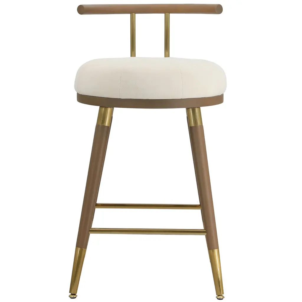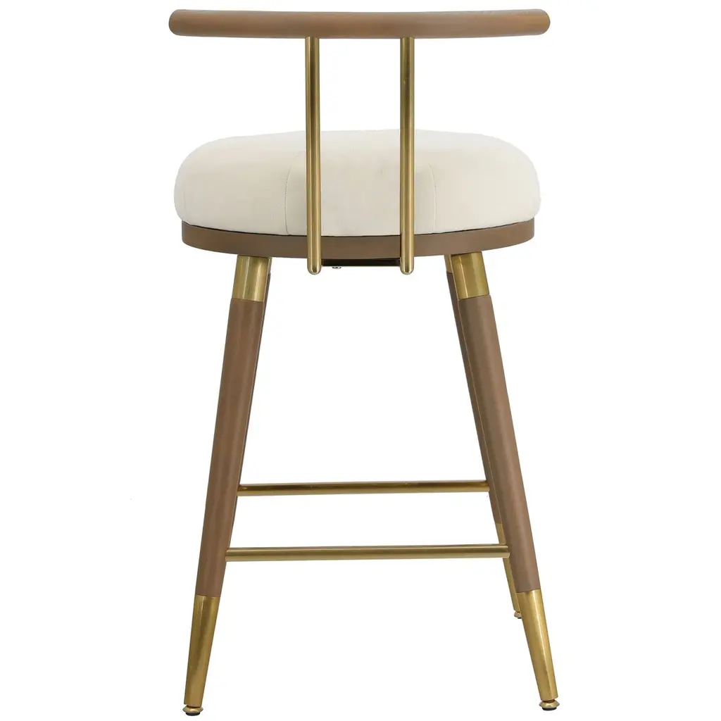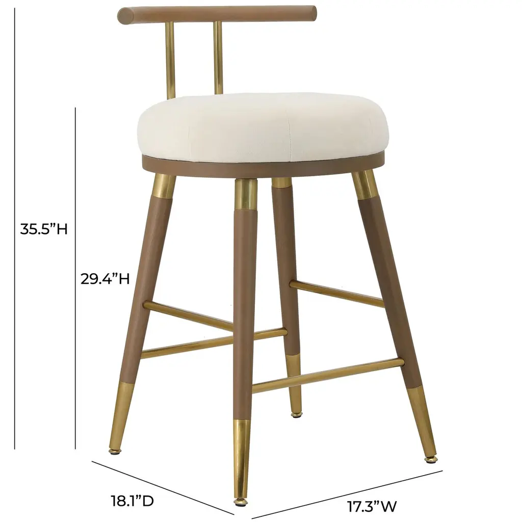 This barstool features a perfect trifecta of materials: a plush velvet seat, a frame made of durable wood, and glimmering golden trim.