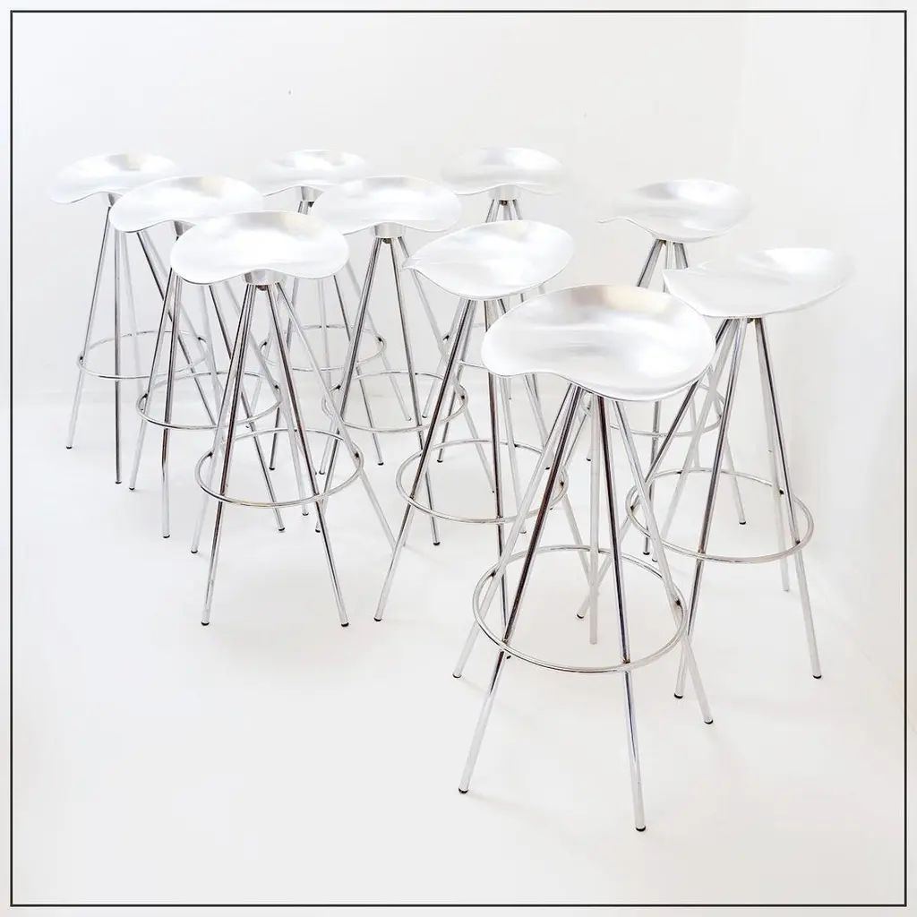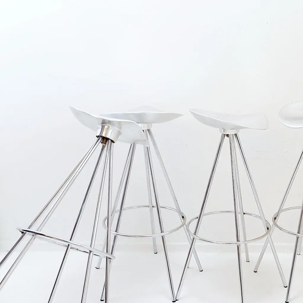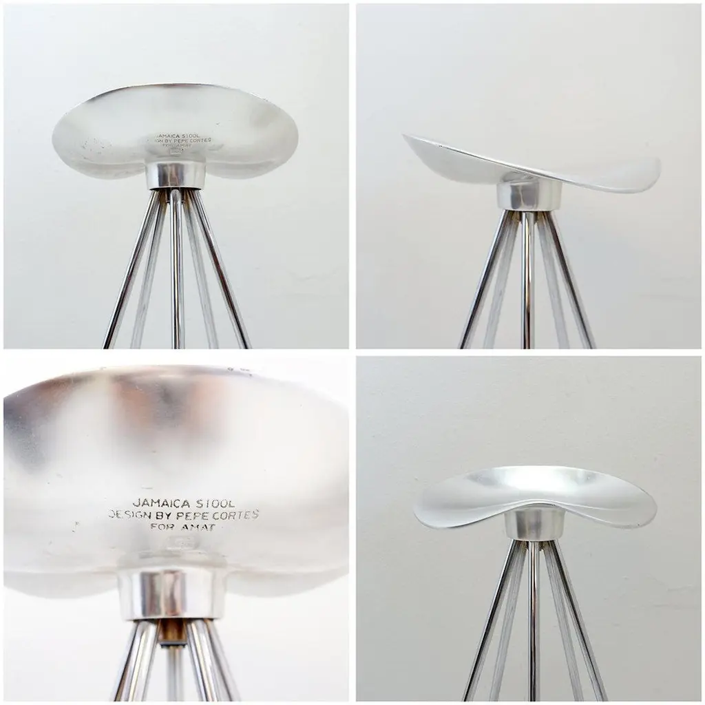 "Jamaica" Bar Stools by Pepe Cortes for Amat - 9 availableVintage - Decoration - Timeless Decor'Jamaica' Stools by Pepe Cortés for Amat- Spain 1990s Sold individually: 9 availablePrice for 1 : 550/1Measures :Seat : 35cmx33cmW : 52 D:49cmH:81cmSH:75cmMaterials : Aluminium - Steel