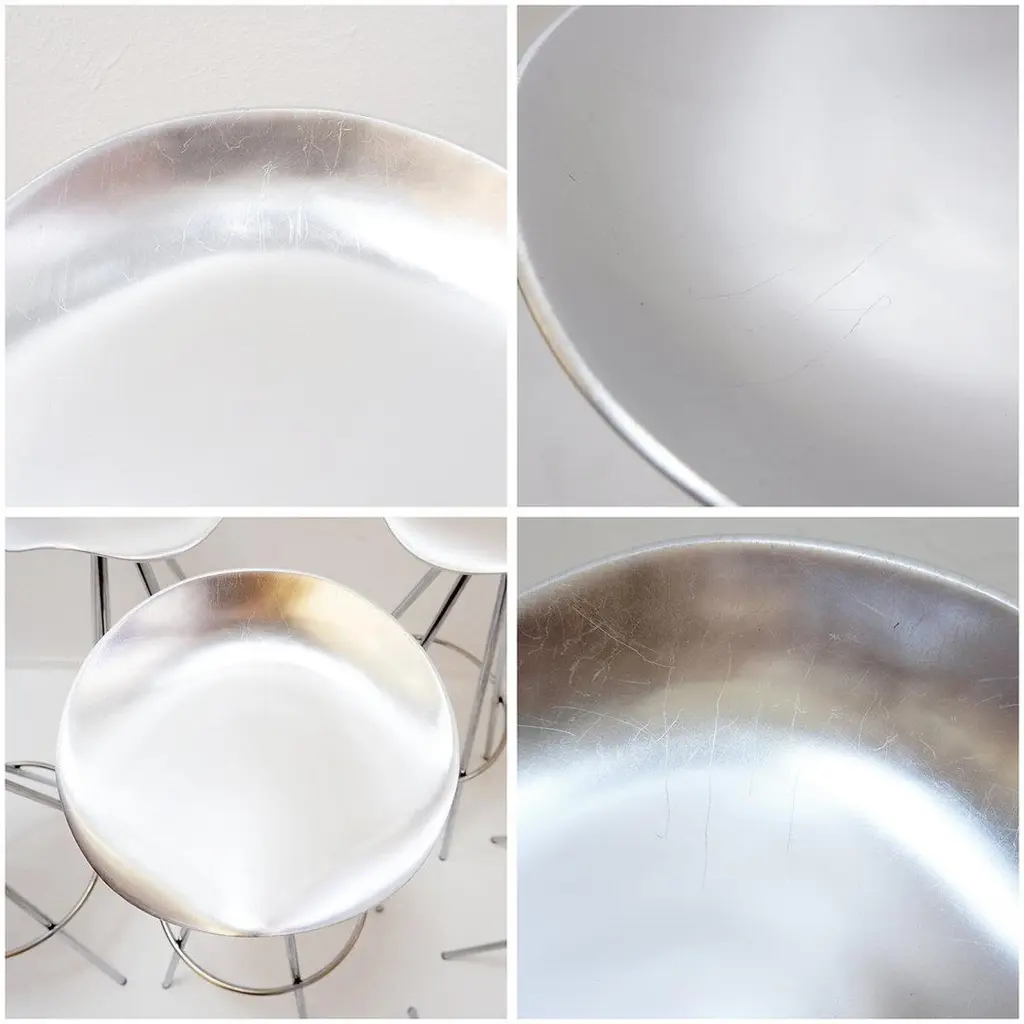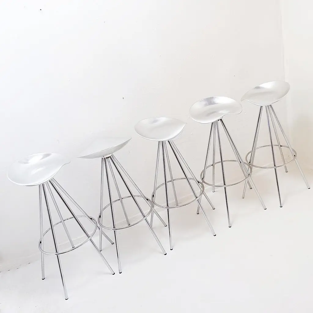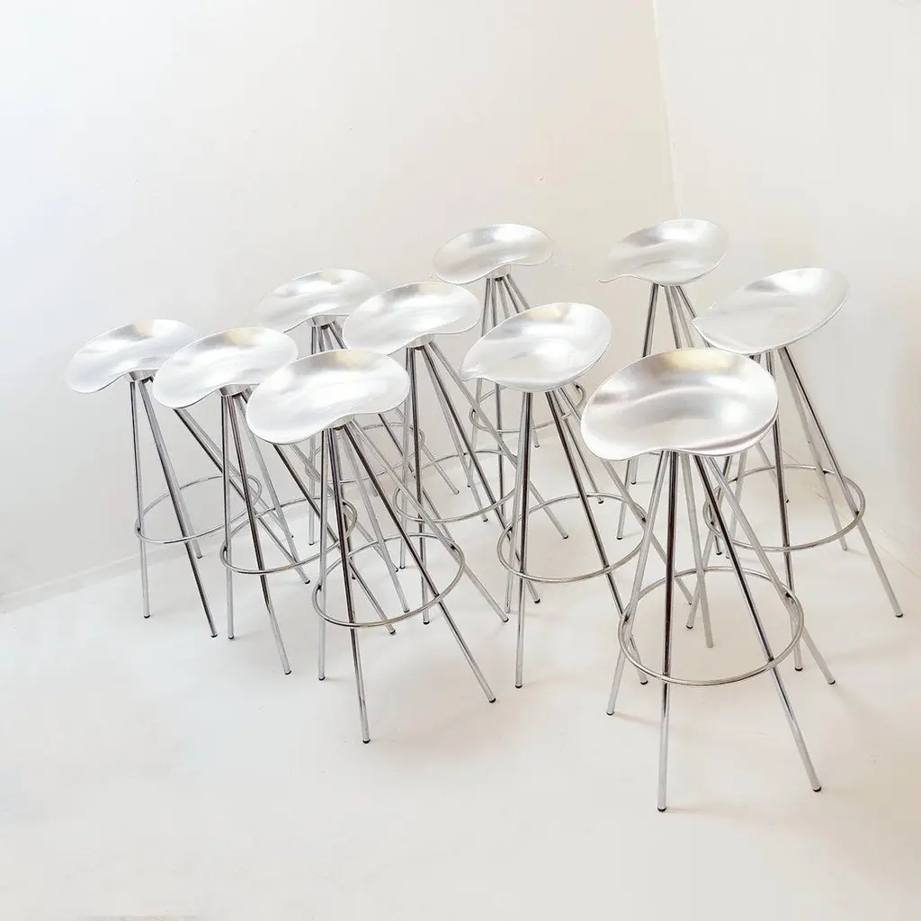"Jamaica" Bar Stools by Pepe Cortes for Amat - 9 availableVintage - Decoration - Timeless Decor'Jamaica' Stools by Pepe Cortés for Amat- Spain 1990s Sold individually: 9 availablePrice for 1 : 550/1Measures :Seat : 35cmx33cmW : 52 D:49cmH:81cmSH:75cmMaterials : Aluminium - Steel