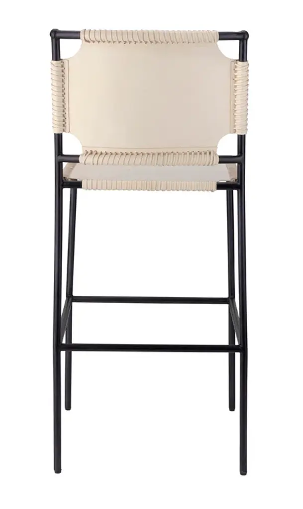 A warm mix of soft full-grain leather and a sleek steel frame to create a refined stool that is both rustic and modern. Featuring a sling-style seat and back that is reinforced with a chunky stitch for incredible longevity and enduring style. Create that special design moment in your home by pulling up this stool to your home bar, counter space or situated in a corner.