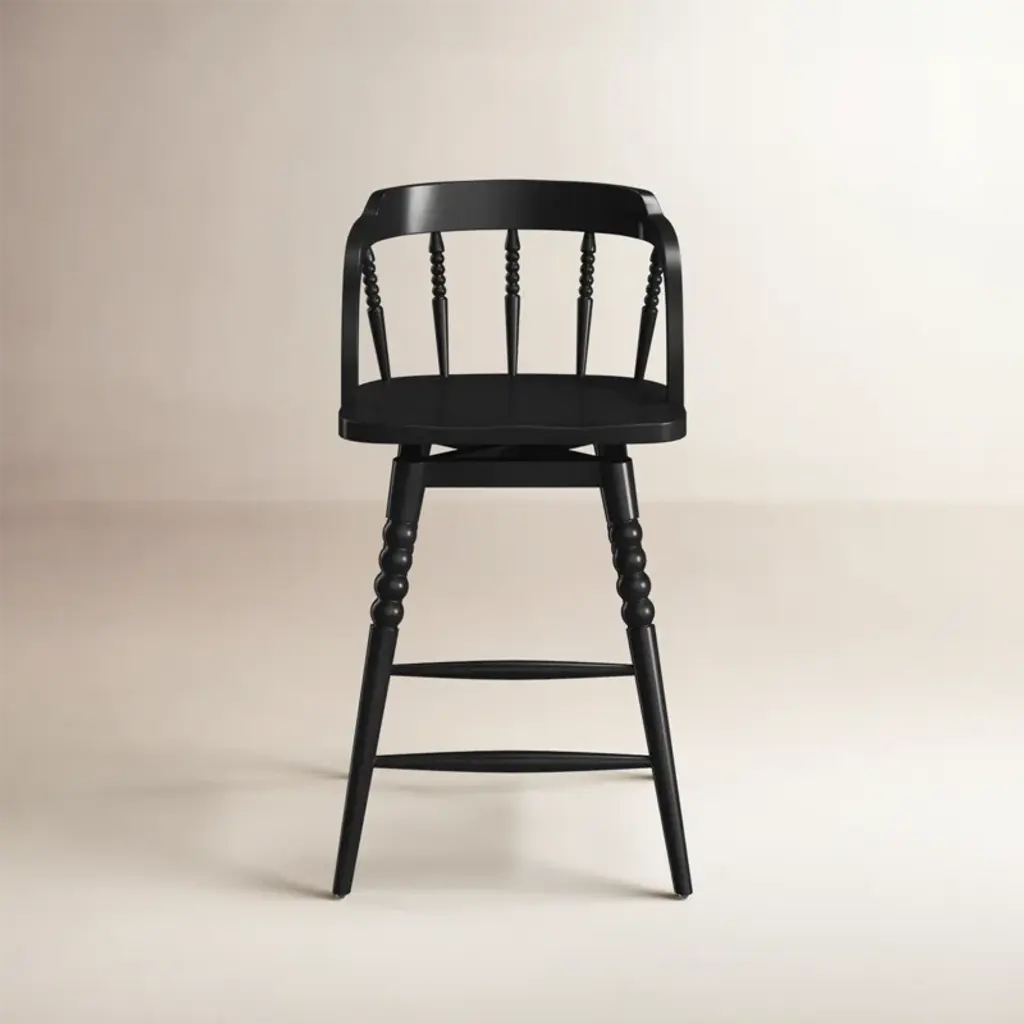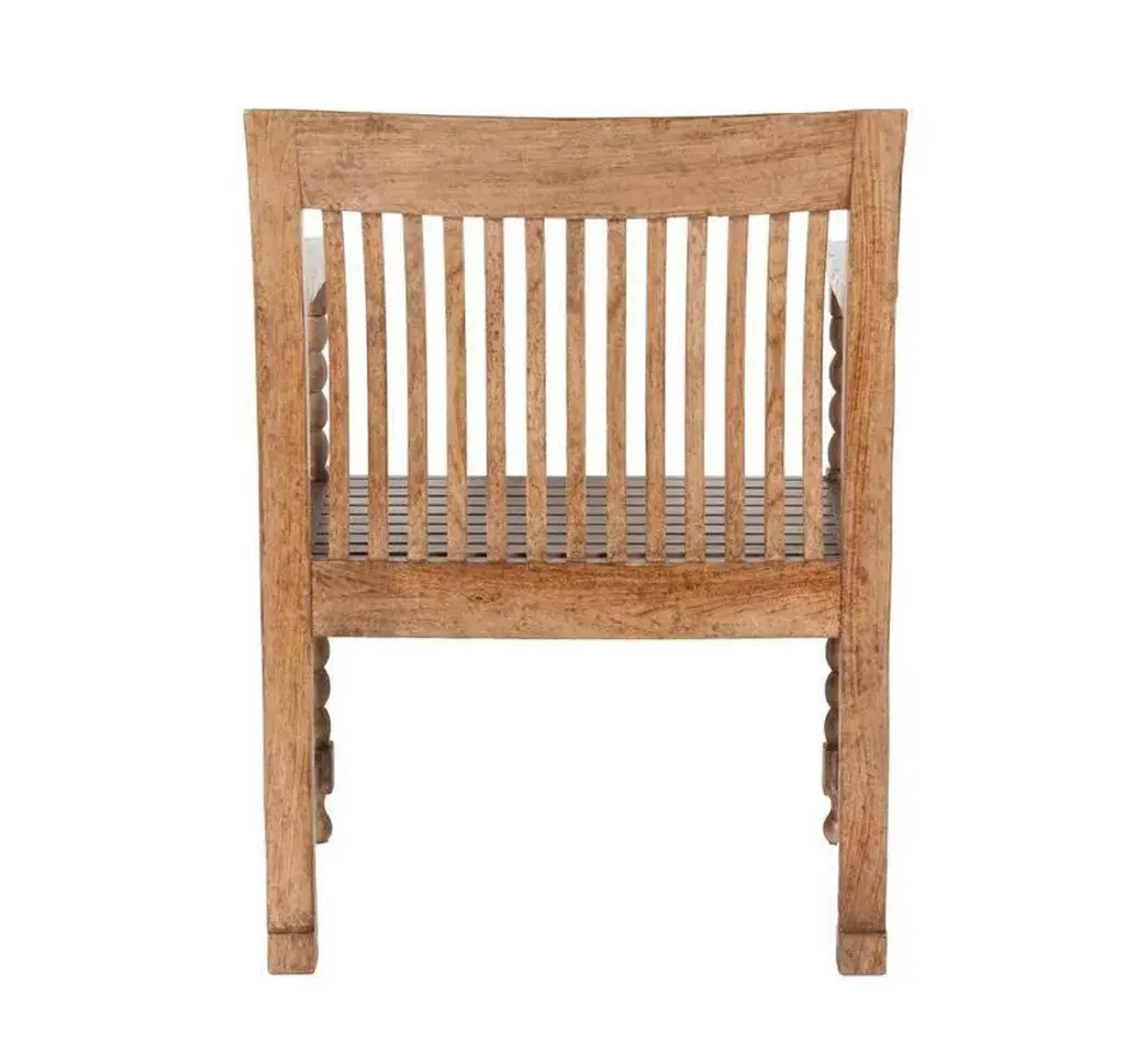 Martyn Lawrence Bullard's custom Java Barstool.Inspired by Dutch colonial furniture, these deep chairs are perfect both indoors and out. The slat design bring light to the overall feel whilst the "egg" carved legs add a quirky, unexpected quality.