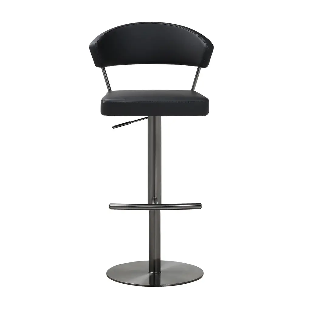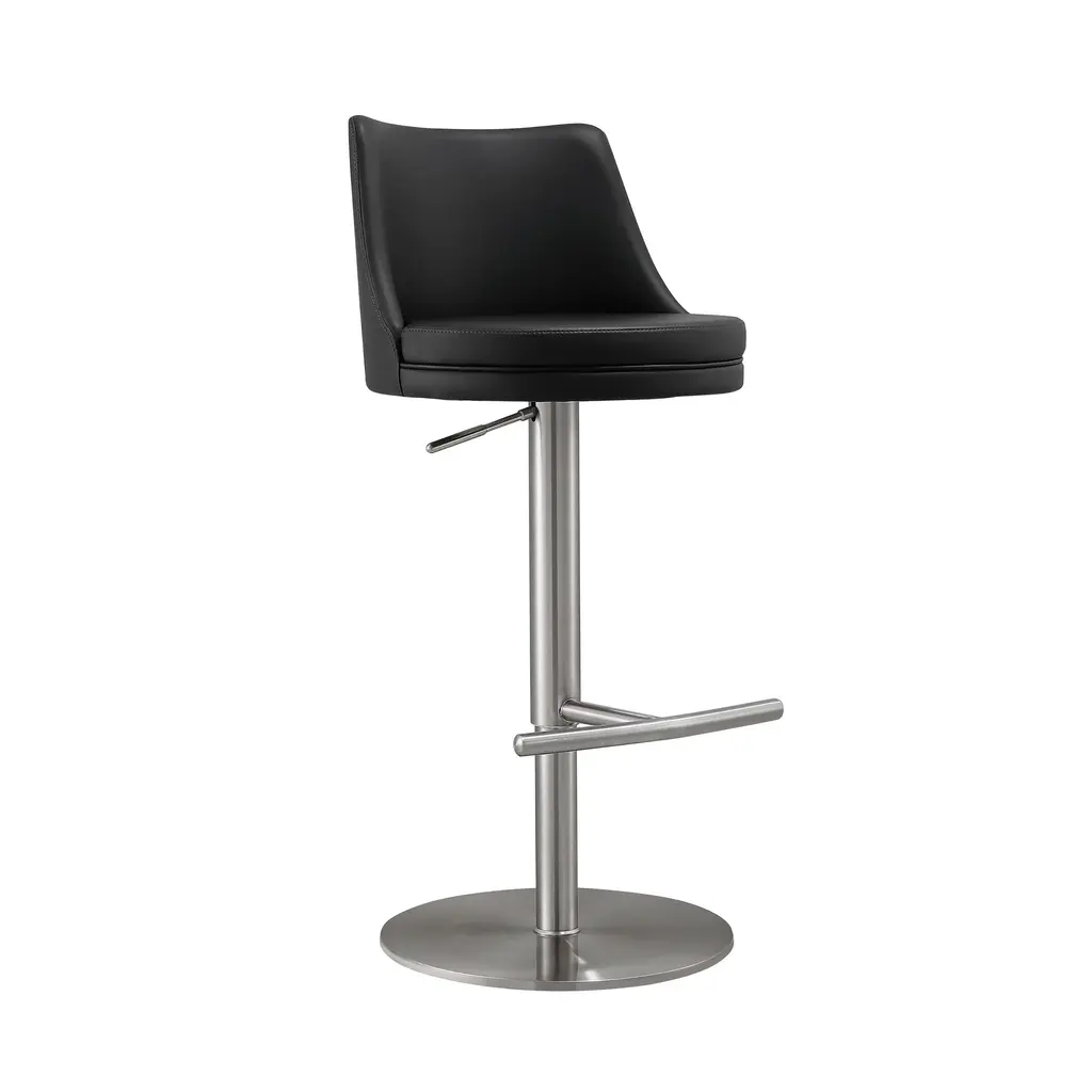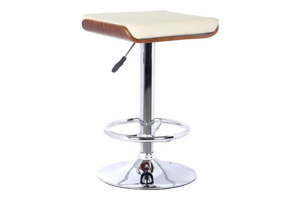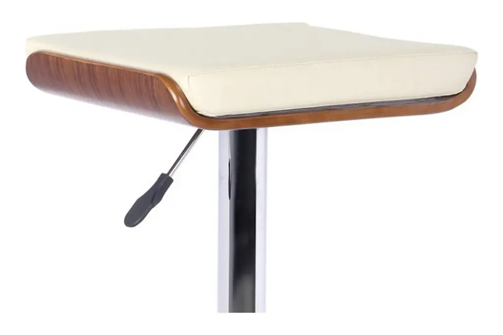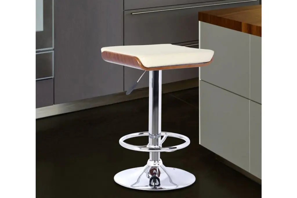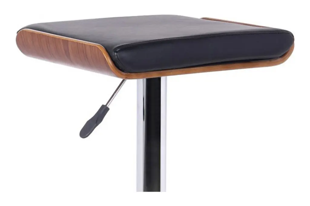 The Java backless barstool provides you with a new look for your home. This stylish barstool has a footrest around the bottom of the stool and adjusts with a mechanism that works with gas. The chrome and walnut base is complemented with the faux leather seat in black. Adjust the seat to your needed height and youll have the perfect seating option for your home.