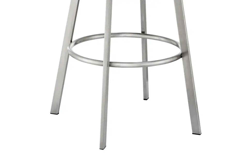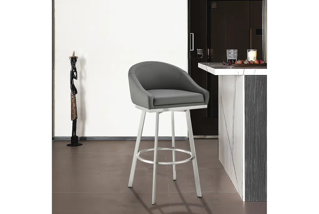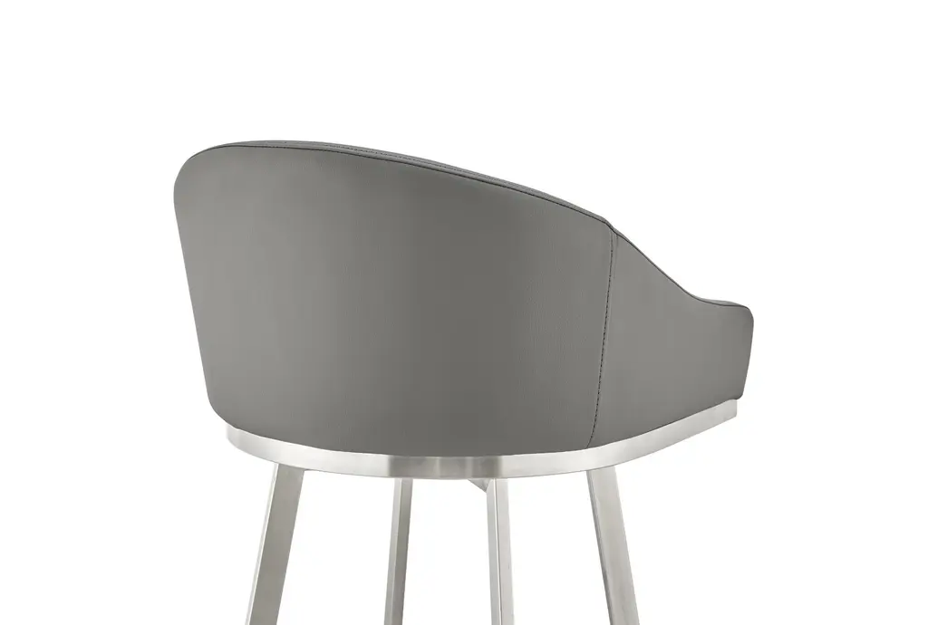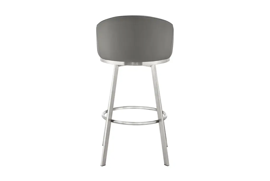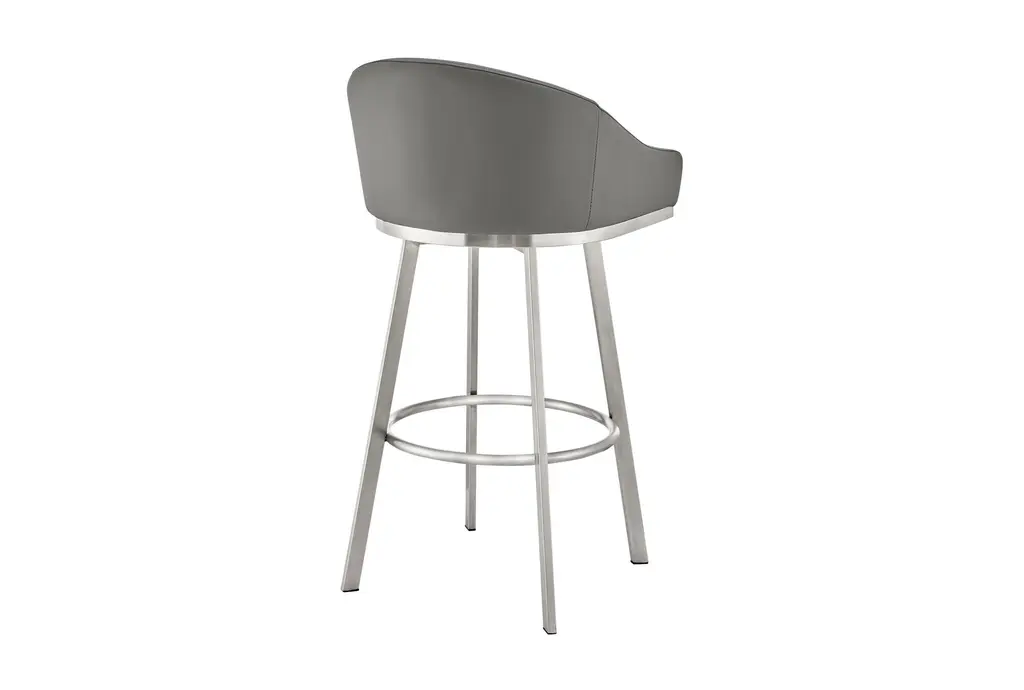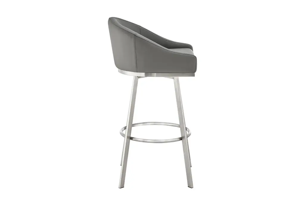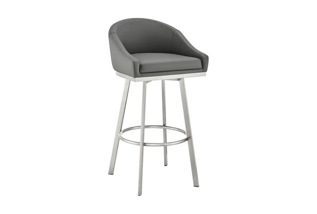 John 30" Swivel Bar Stool In Brushed Stainless Steel With Gray Faux Leather