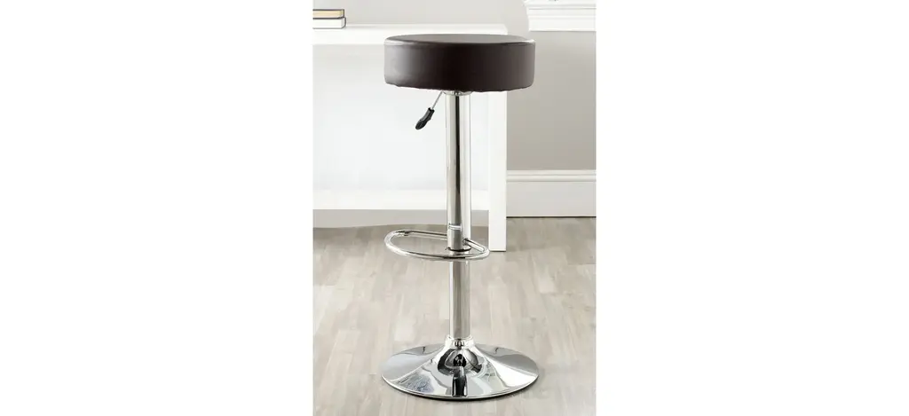 The ample cushion of the brown faux leather and chrome Jon Bar Stool gives you the perfect reason to linger over coffee or cocktails. With 360 degree swivel and adjustable seat height from 25.6" to 31.5", friends will be popping in much more often.
