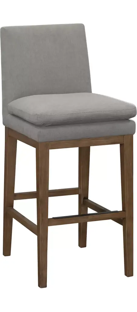 Extend dinner conversations and mealtime fun with the comfort and support of our Jordan barstool. With a clean-lined silhouette and easy-to-clean upholstery, this barstool also features foam-filled seats and wooden legs in a brown finish.