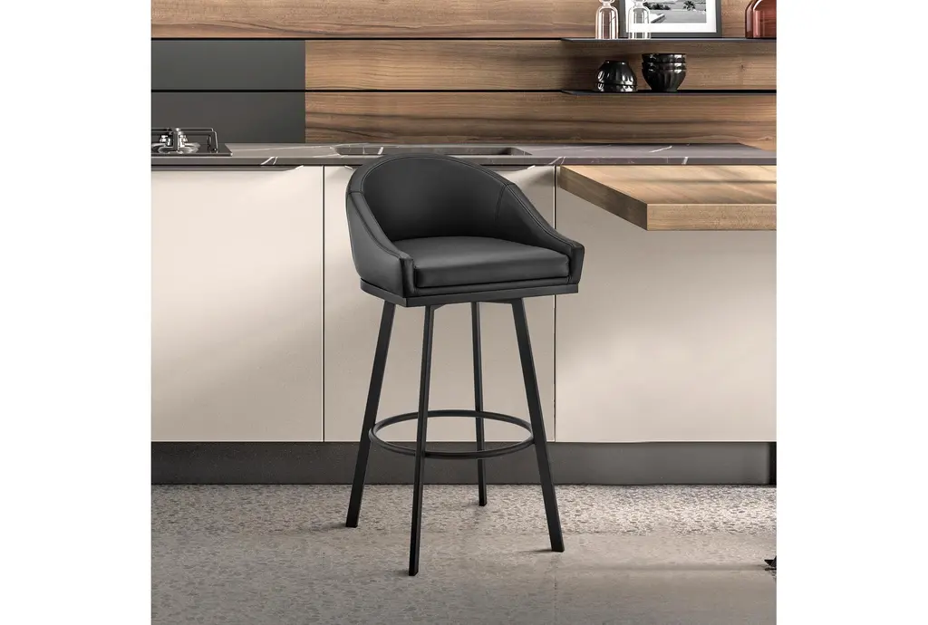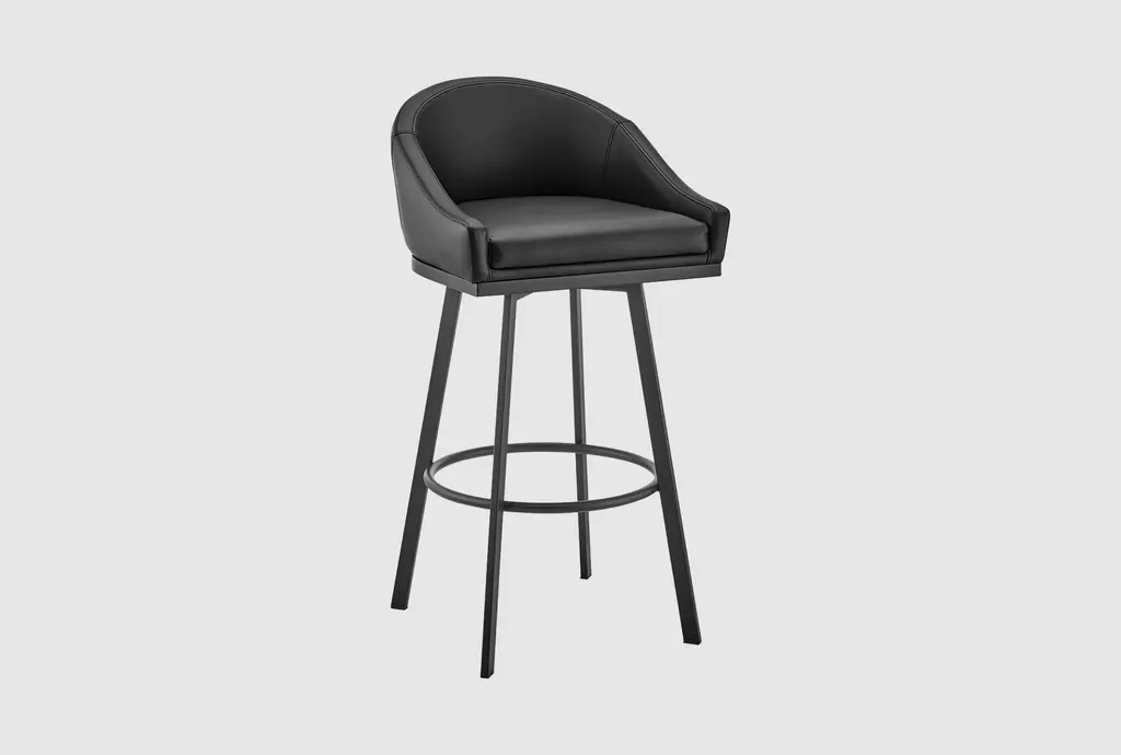 Jordan Swivel 29.5" Barstool In Black Metal With Black Stain Resistant Faux Leather