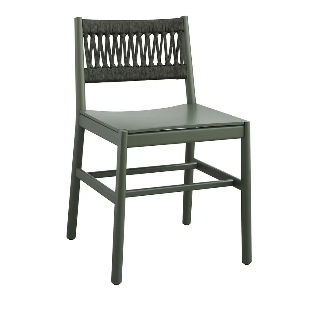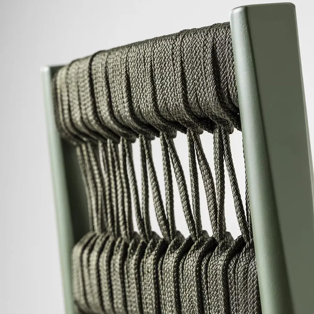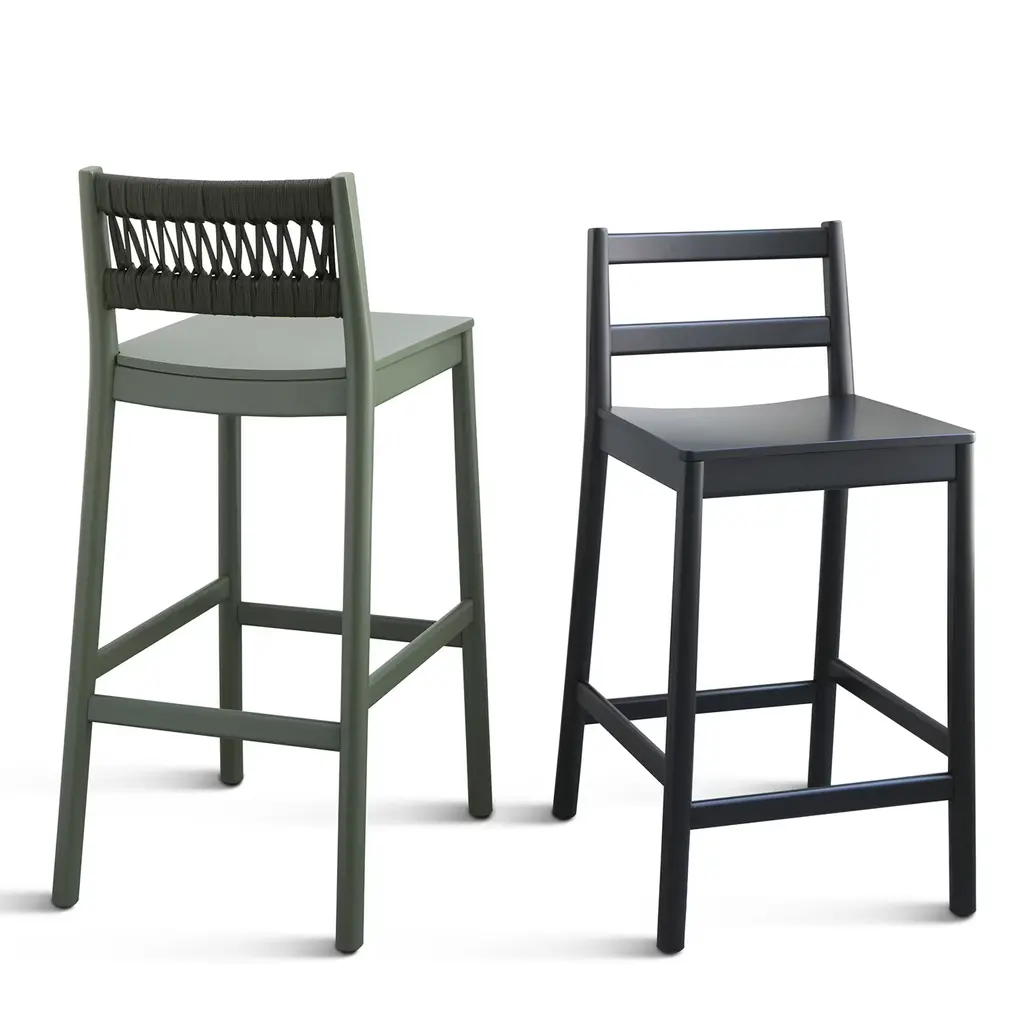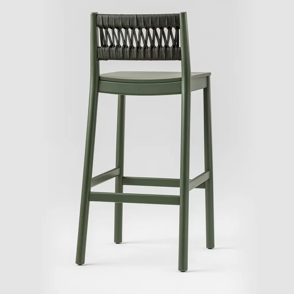 Julie Dark Green Wood Bar Stool With Rope Backrest