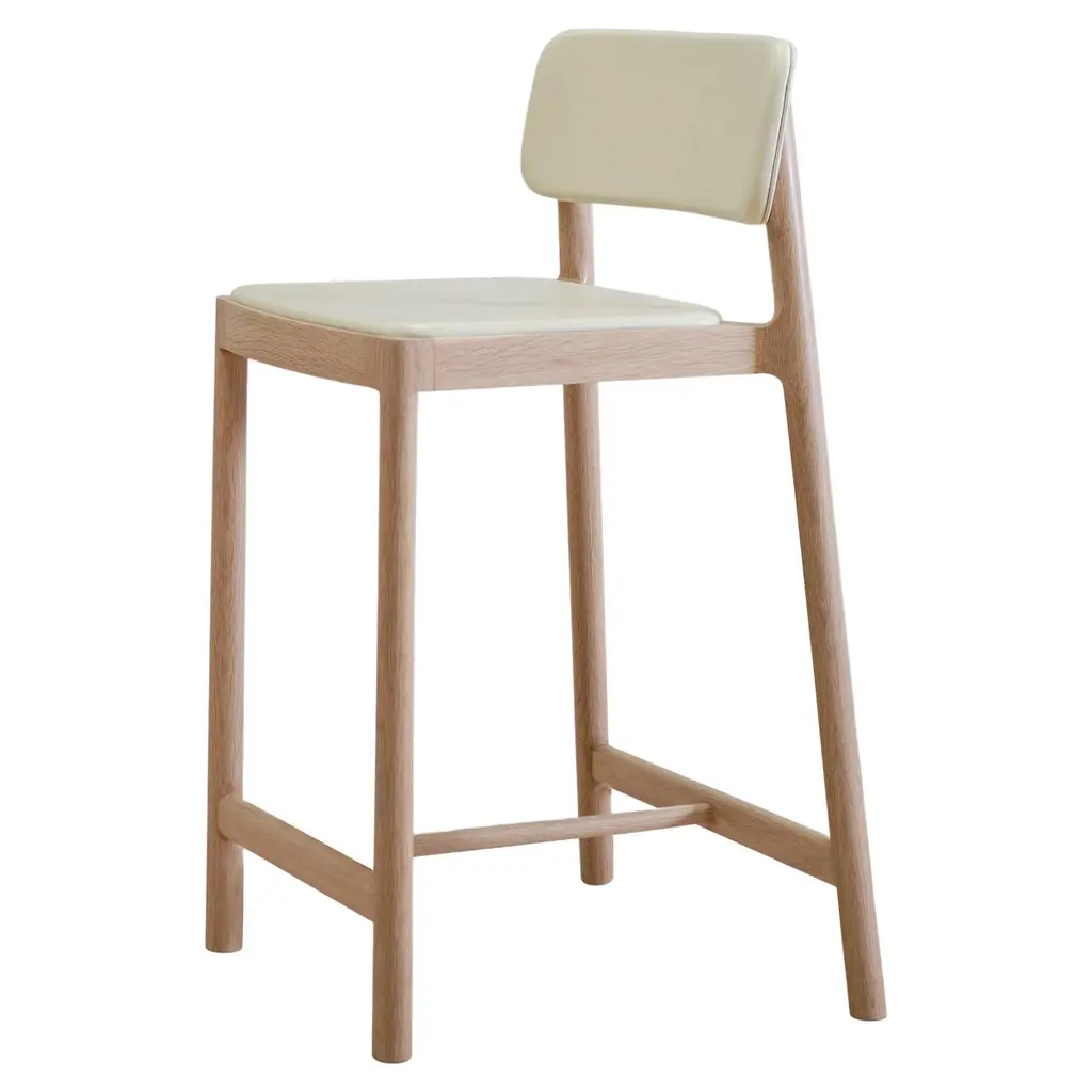 Barchair with wooden backrest and upholstered seat from the JUNE collecition.A profile apparently simple but full of character and expressiveness. The edgy forms of seat and back gets smoother and originate an aesthetic project of absolute value. JUNE offers a a wide and complete range of seats for easy use in a coffee- shop, in a restaurant, in a pizzeria or in any other public or private space.