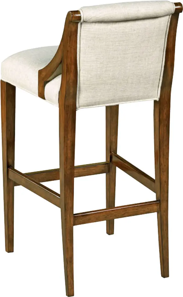 Tapered legs, curved arms, and gleaming brass trim on the footrest give this barstool timeless finesse. The cushioned seat and back are upholstered in stain-resistant linen for worry-free entertaining.