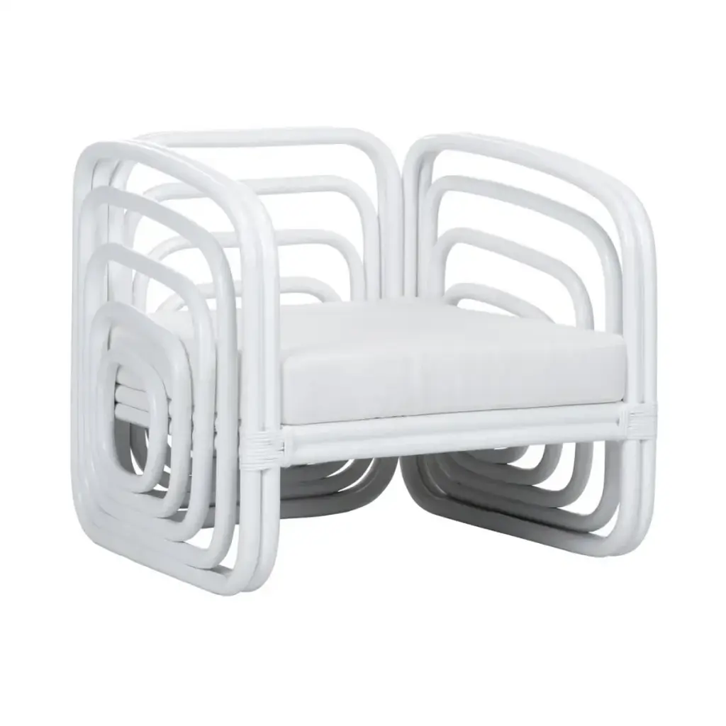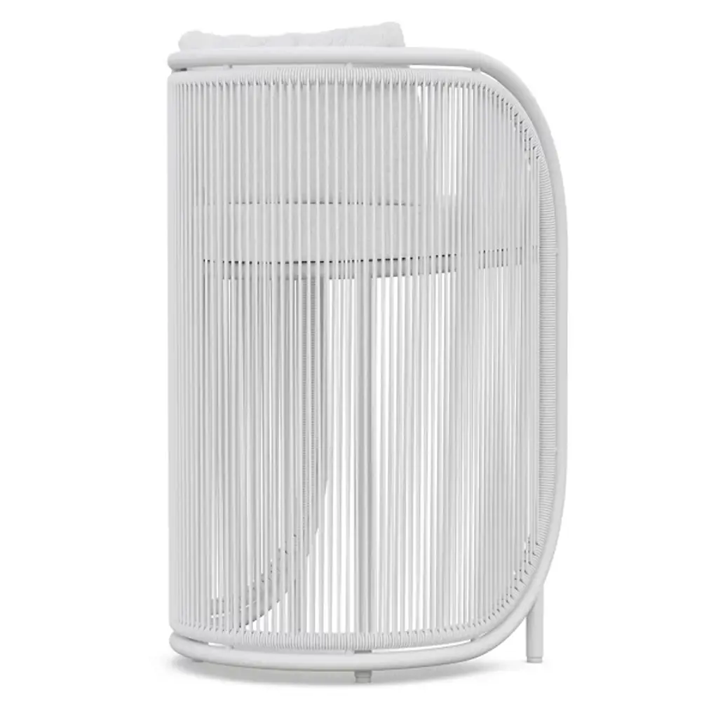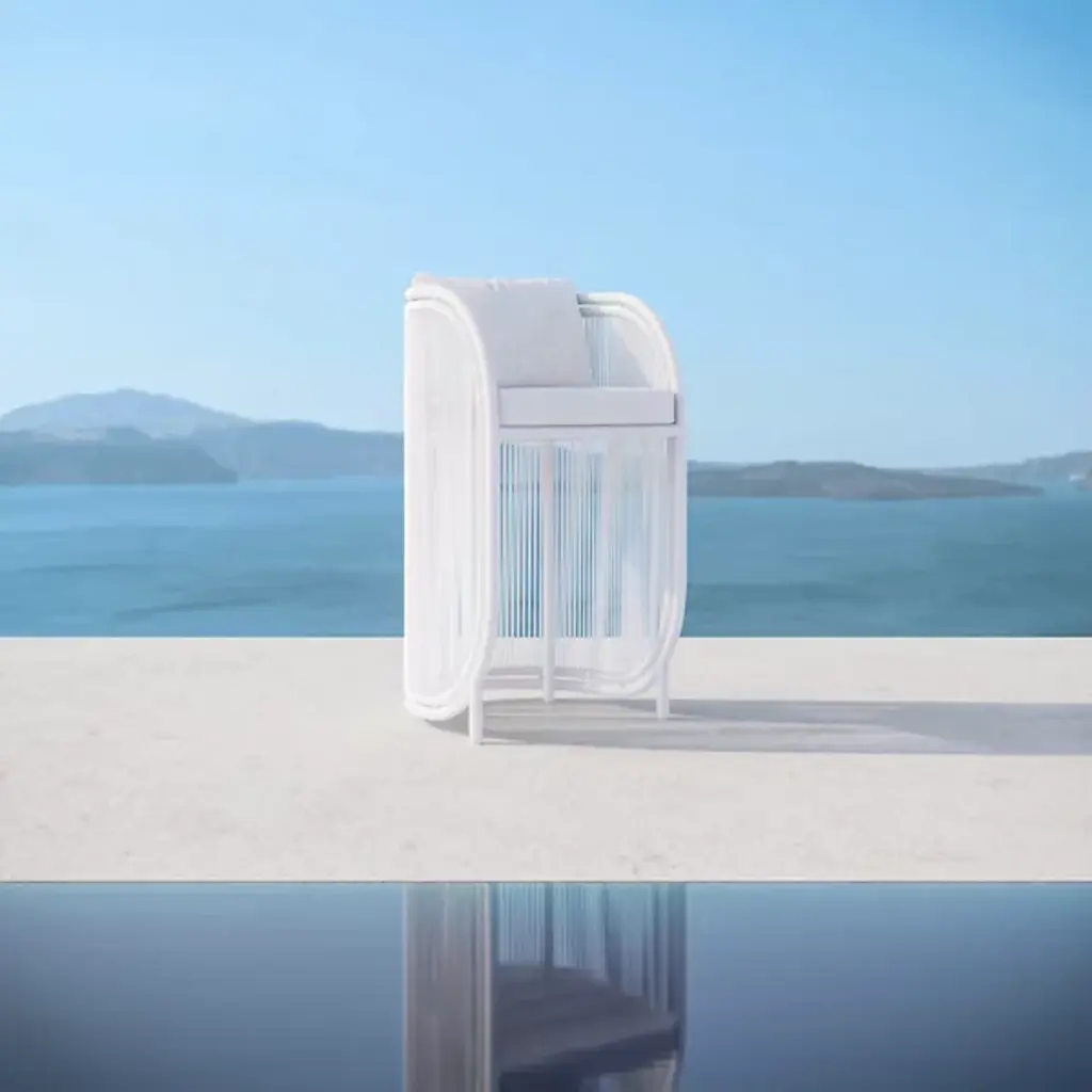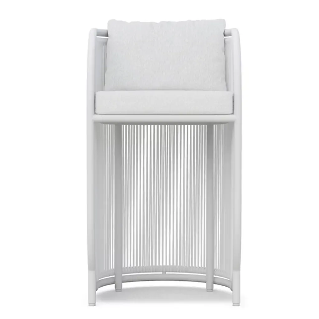 Make a high-style impression and provide uplifting comfort to outdoor bar or counter-height areas with the Kamari Outdoor Bar Stool from Azzurro Living. The piece is fashioned from a durable construction of powder-coated aluminum. The metal framework draws the eyes as its generous curves transform into a back and armrest. Vertical strands of the all-weather rope weave fill the frame for airy comfort and style. Pillows and cushions of high-density foam provide an extra touch of comfort. These elements feature a Solvita fabric wrap for long-lasting durability.