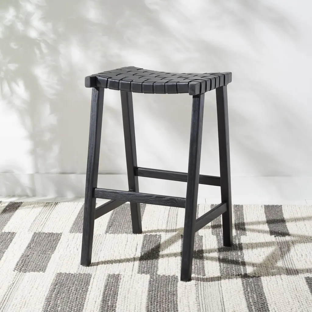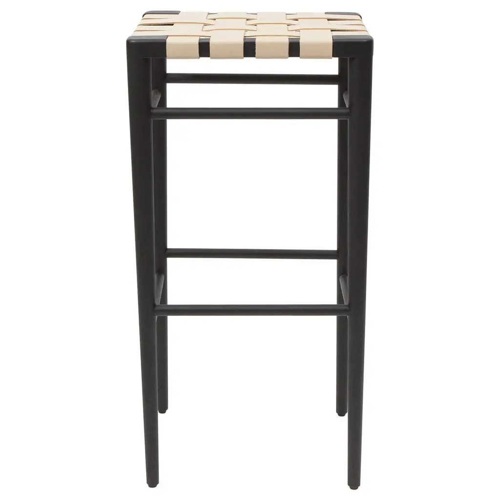 Overflowing with airy contemporary charm, the Kernyn Leather Weave Barstool is perfect for giving any high style seating area a touch of coastal ambiance. Its woven leather seat provides beautiful decorative contrast while complementing its chic open geometry.