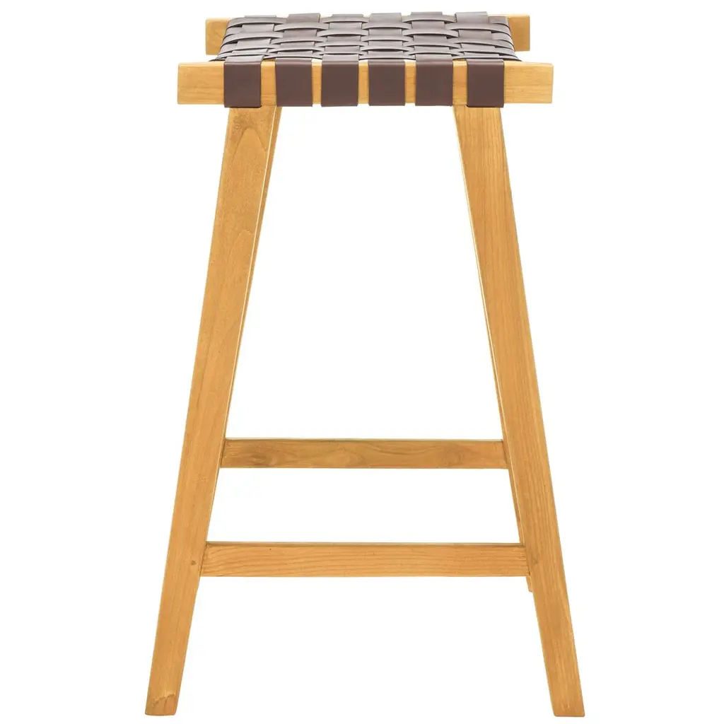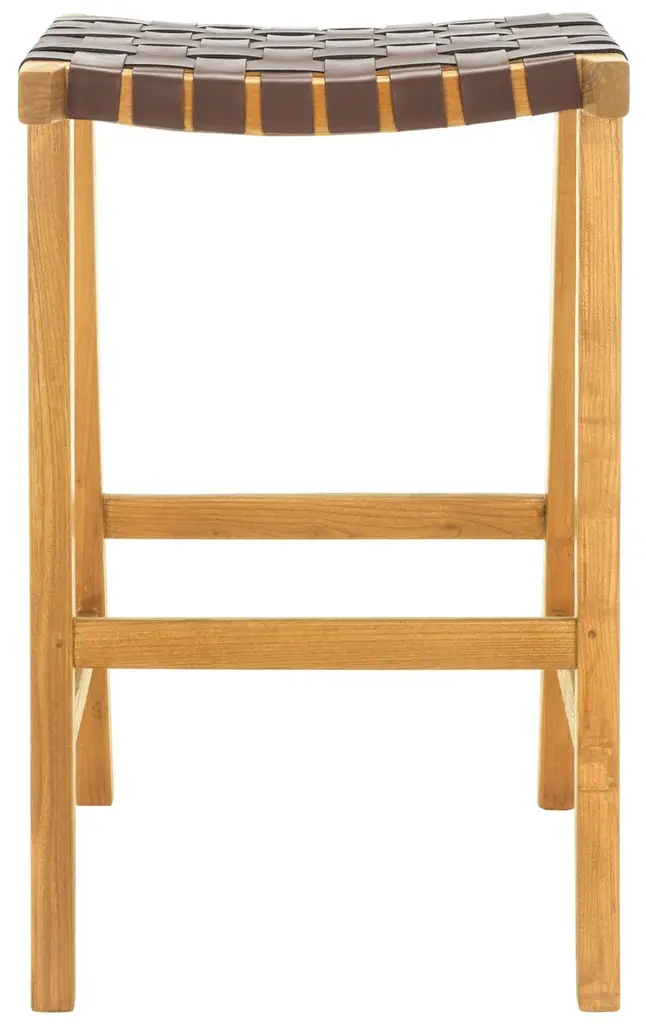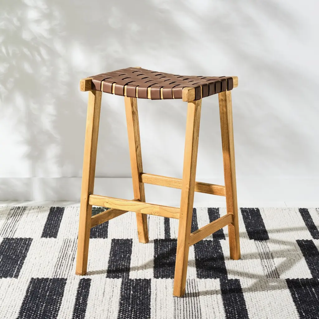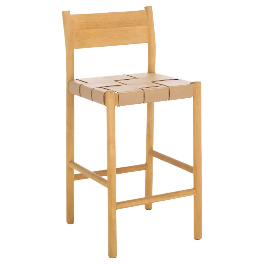 Overflowing with airy contemporary charm, the Kernyn Leather Weave Barstool is perfect for giving any high style seating area a touch of coastal ambiance. Its woven leather seat provides beautiful decorative contrast while complementing its chic open geometry.