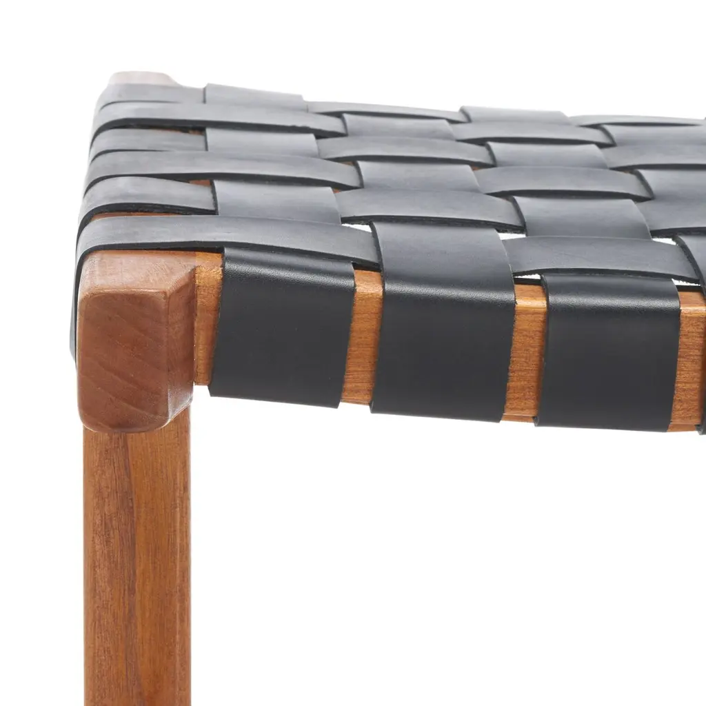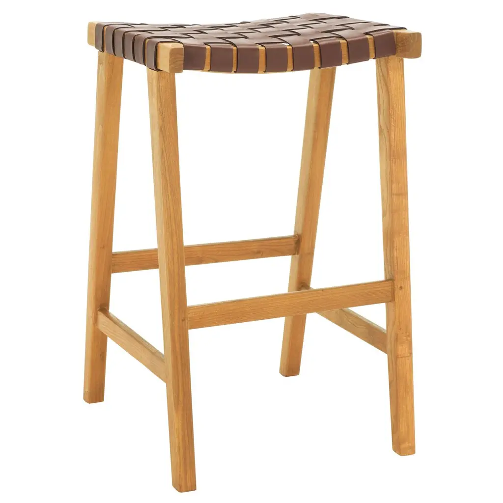 Overflowing with airy contemporary charm, the Kernyn Leather Weave Barstool is perfect for giving any high style seating area a touch of coastal ambiance. Its woven leather seat provides beautiful decorative contrast while complementing its chic open geometry.