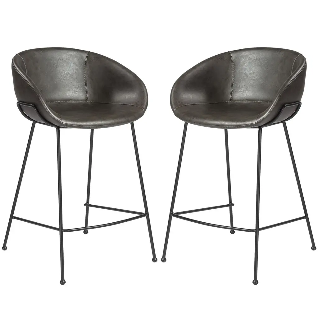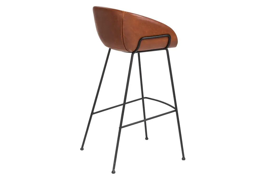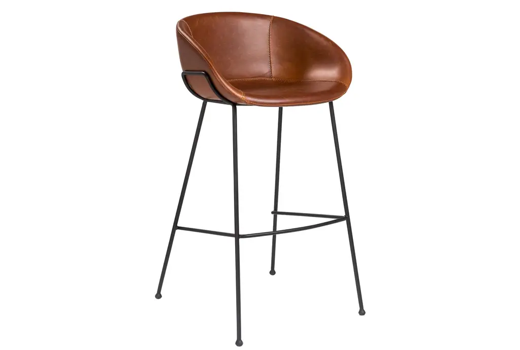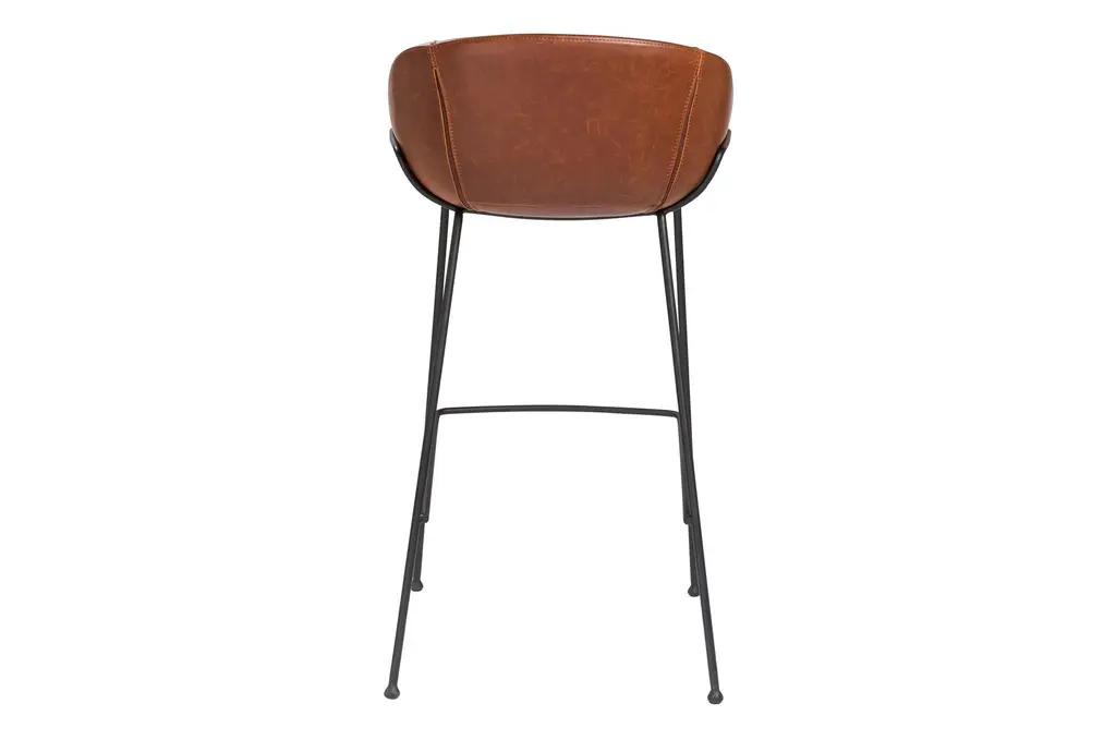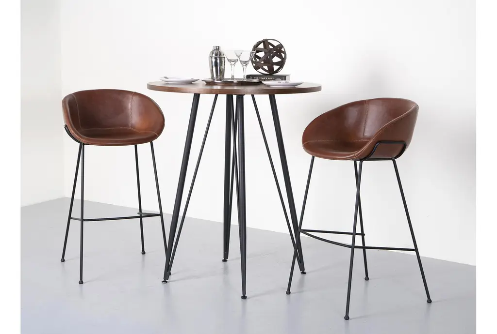Solid steel legs in matte black powder with rounded feet for a sturdy support. Vintage leatherette over foam seat, back and armrests with baseball stitching along the edge. Comes assembled. Measures 20.87"W x 21.26"D x 38.98"H.