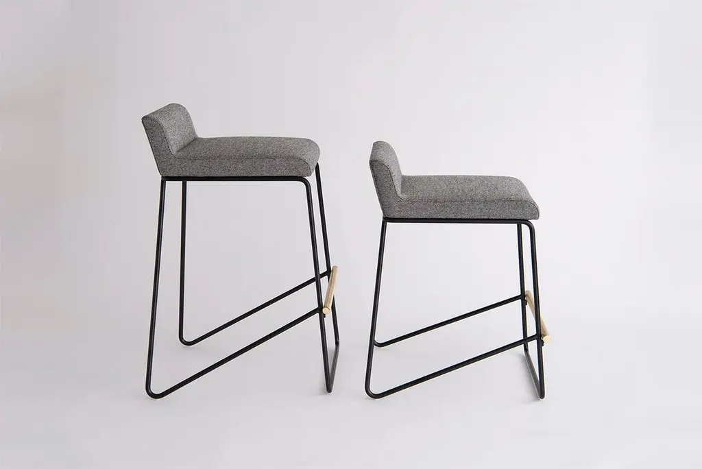 Listed price is for the Kickstand Bar Stool in powder coat (flat black or flat white) with a solid brushed brass footrest and Hallingdal by Kvadrat fabric.COM is also available, with a List price of $ 2,350.00.The Kickstand Bar stool is also available in leather, with a List price of $ 2,969.00 in Harness by Moore & Giles leather, and $ 2,510.00 in COL.Prices exclude packing. Collection of stools, dining chairs, and lounge chairs, where upholstery sits atop powder coated metal bases. Each piece is accentuated with a deliberate solid brass bar detail.Solid steel bar available in a flat black or white powder coat finish with solid brushed brass bar and upholstered top. Powder coat finishes are available in custom colors. Upholstery may be sourced COM, COL or suggested fabrics and leather. (COM requirements = 1.5 yards , COL requirements = 27 sq ft).