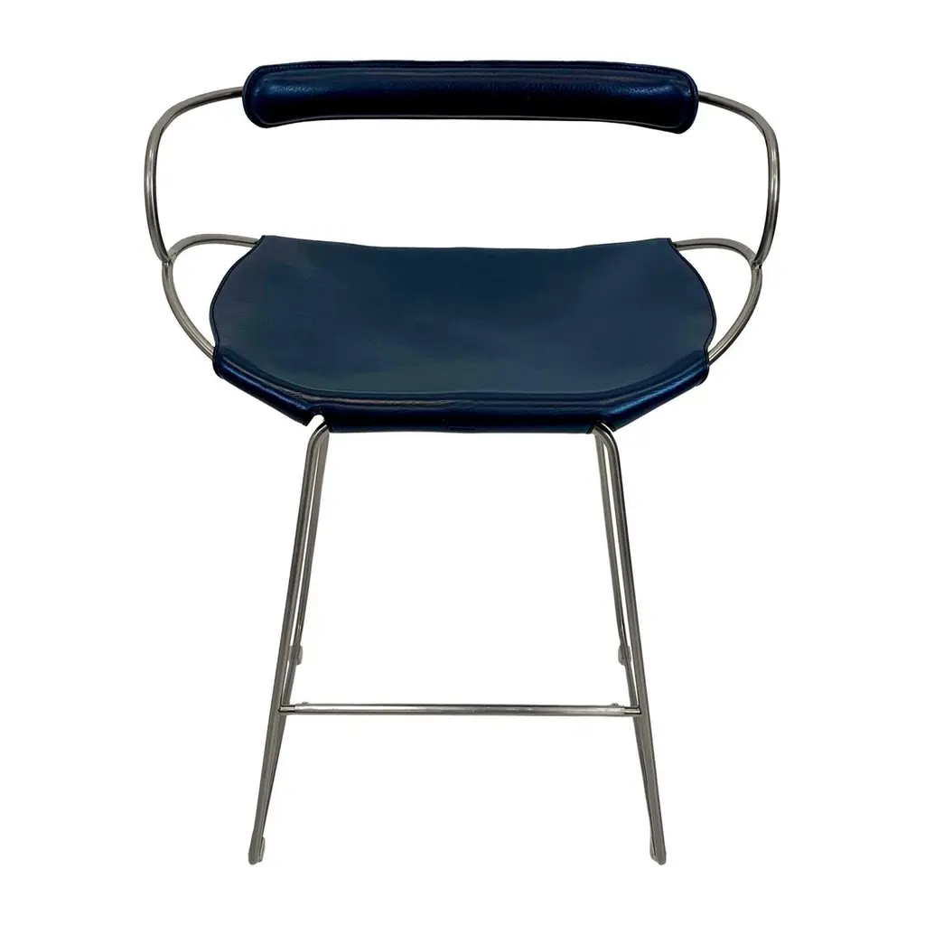 Kitchen Counter Barstool With Backrest Old Silver Metal And Navy Blue Leather