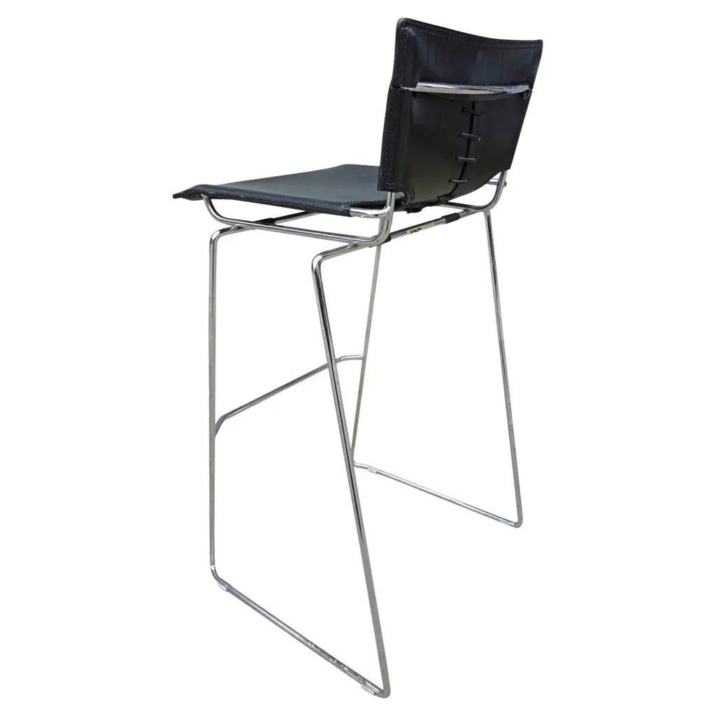 The Hug contemporary counter stool with backrest is designed and conceived with a light aesthetic, the slight oscillation of the steel rod of 12 mm is complemented by the flexibility of the double 3.5 mm thick leather. When sitting in this furniture you feel an enveloping sensation, like being hugged, since the weight of the body is distributed evenly. Each unit becomes a refuge of visual and ergonomic wellbeing.Our Hug Collection is inspired by the organic lines of a landscape, the curves of nature, and the imaginary silhouette of the wind inspire this collection of organic forms, almost like metallic sculptures. All pieces are done with cold bended steel rods, polished, nickel plated, colored by electrolysis, and lacquered. The process of polishing and lacquering the steel, goes through a manual and delicate chroming process, which gives its final and unique metal color finish. This precise technique gives a uniform metallic finish of minimum 50 microns over the entire Surface. Our metal finishing has successfully passed a corrosion resistance test in a salt spray chamber according to UNE-EN ISO 9227: 2017 and UNE-EN ISO 1456: 2010. Our signature screws are made with brass turning lathed, polished, and lacquered, these are the pieces that fix the saddle leather to the metal frame.Leathers are Spanish hides vegetable tanned. We use premium saddles in multiple colors to adjust to your taste and interior needs. This traditional vegetable dying and tanning method is an organic technique that relies on natural tannings from bark or plant tissues. The use of oils and natural fats give the leather a distinctive flexibility and texture, allowing it to be molded, retain its shape and age graciously.All skins are carefully selected from food industry, with a minimum thickness of 3.5 mm / 0,02 in, using the part of the animal's shoulder, which allows for larger pieces and uniformity, even though signature wrinkle from the animal’s neck may be recognizable. The vegetable tanning is a traditional and artisan treatment, which is respectful to the environment. Even with careful selection natural marks as a result of the contact with other animals, the age, origin and characteristics of the skin, or even the season in which the tanning takes place cannot be avoided. We still believe that these factors only add authenticity and uniqueness to every piece. Our leather parts are made with double saddles, always showing the top side of the hides that presents the better quality.Customization options.With the aim of creating customized pieces, clients can select from the various metal finishes, and leather colors to create pieces that complement their home décor. Leather colors available, black, navy, dark brown, cognac and natural tobacco, and steel polished finishing available, aged brass, black smoke and aged silver.Normally we use tone on tone threats for stitches, but client can select a contrast option, being possible to select any color to make a unique piece for the project it belongs. The finish on the edges of our leather components are sanded and hand painted. We have the option of select an alternative color if not tone on tone will be applied.Please consult in case you are interested on having a particular heat embossing stamp on the leather with your own branding.Our collections are made to full fill home spaces where to gather and enjoy great conversation with families and friends. Occasional furniture for exquisite homes, from cottages to exclusive resorts. Our product is understood as a sculptural piece of design, as an art object to be displayed at different house spaces as library, bar, living, foyer, bedroom, powder, meeting, grand or great room.The different finishes options make the furniture perfect combinations on diverse styles, from rustic mountain home, a small cottage, a ski lodge retreat, or industrial a minimalist look.