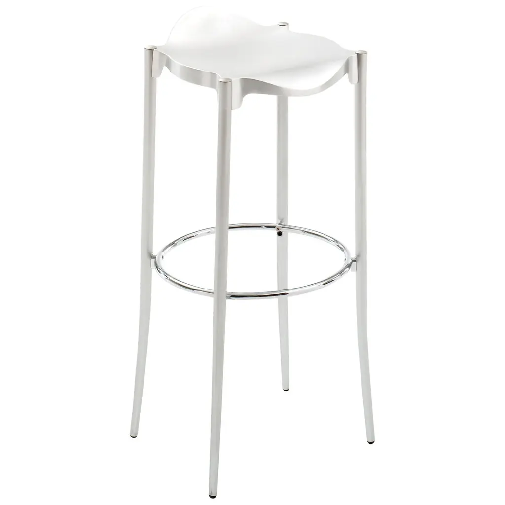 Starck first designed the Kong barstool for the Chinese restaurant Kong in Paris. The one armed stool was intended to make it easy and graceful for the super model clientele to slither in and out of the bar. Kong requires the hand welding of 24 separate pieces of aluminum, and an additional 8 hours of hand polishing. Features