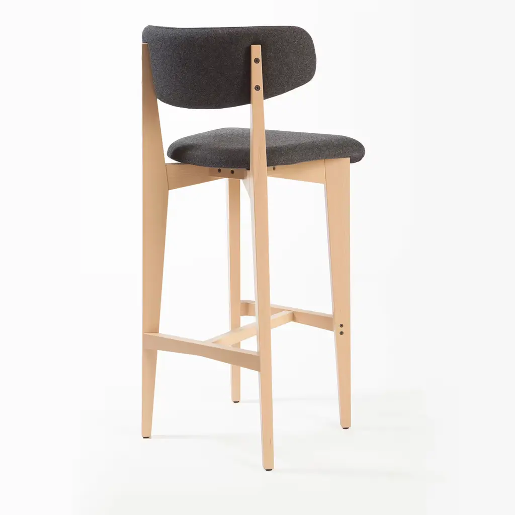 Blending Italian craftsmanship and traditional design, this stool revisits the classic rustic chair with modern fabric for a chic aesthetic that will suit both commercial and residential interiors. The streamlined frame of natural-finished beechwood is embellished by a sophisticated gray fabric upholstery covering the seat and the internal curve of the backrest. Also available in the version with round seat and all-wood.