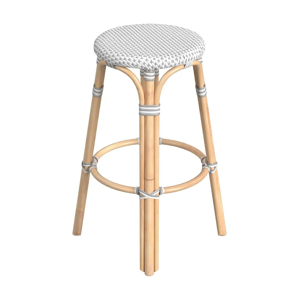 Evoking images of sidewalk tables in the Cote d'Azur, barstools like this will give your kitchen or patio the casual sophistication of a Mediterranean coastal bistro. Expertly crafted from thick bent rattan for superb durability, it features weather resistant woven plastic. This backless barstool is lightweight for easy mobility with comfort to make the space it's in a frequent gathering place.