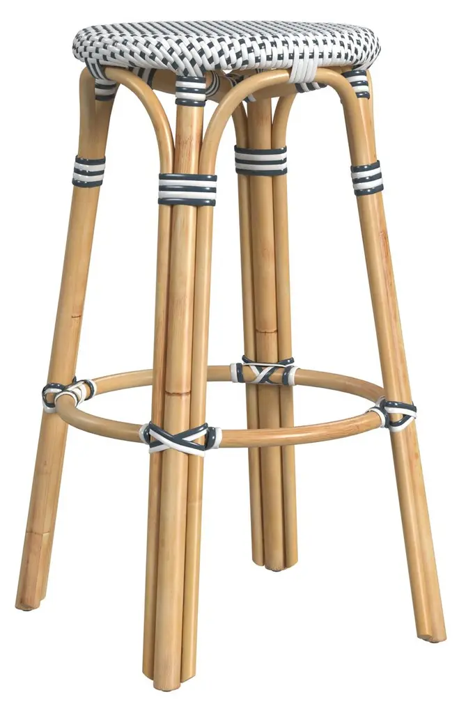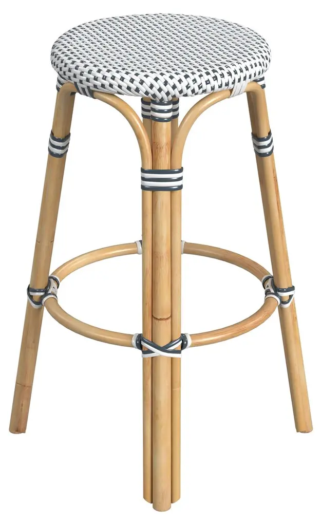 Evoking images of sidewalk tables in the Cote d'Azur, barstools like this will give your kitchen or patio the casual sophistication of a Mediterranean coastal bistro. Expertly crafted from thick bent rattan for superb durability, it features weather resistant woven plastic. This backless barstool is lightweight for easy mobility with comfort to make the space it's in a frequent gathering place.