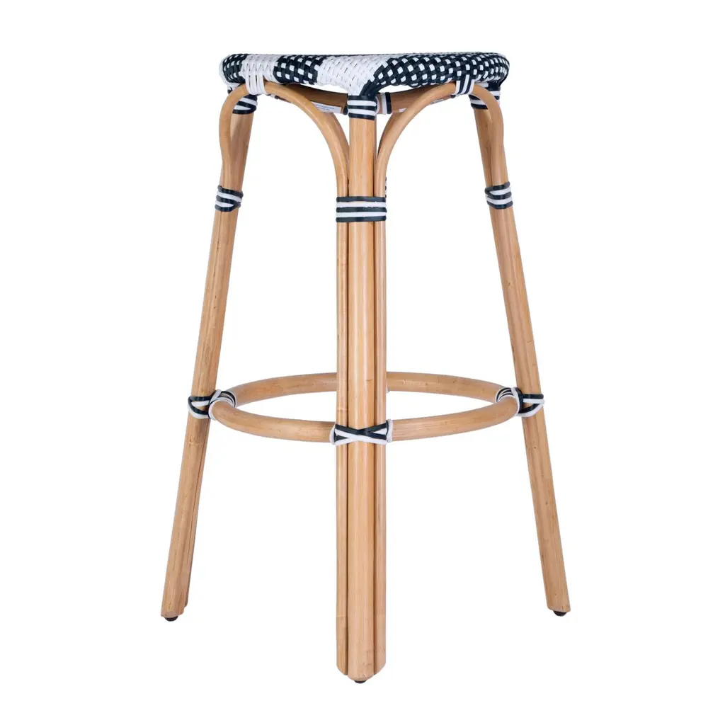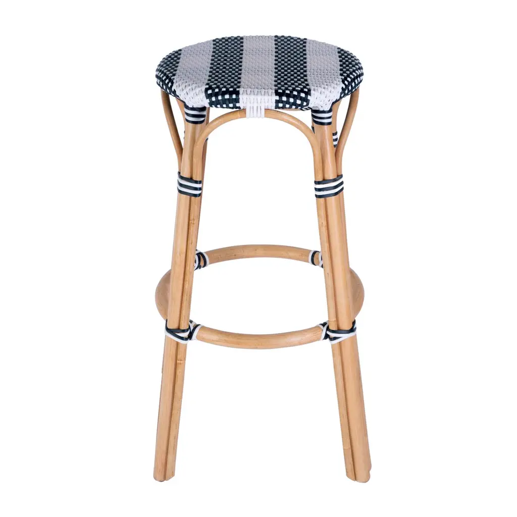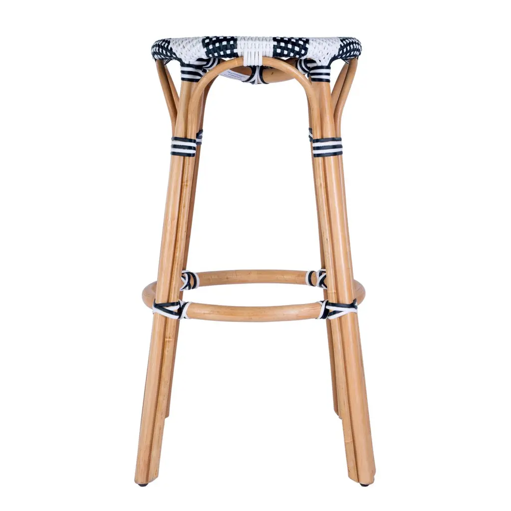 Evoking images of sidewalk tables in the Cote d'Azur, barstools like this will give your kitchen or patio the casual sophistication of a Mediterranean coastal bistro. Expertly crafted from thick bent rattan for superb durability, it features weather resistant woven plastic. This backless barstool is lightweight for easy mobility with comfort to make the space it's in a frequent gathering place.