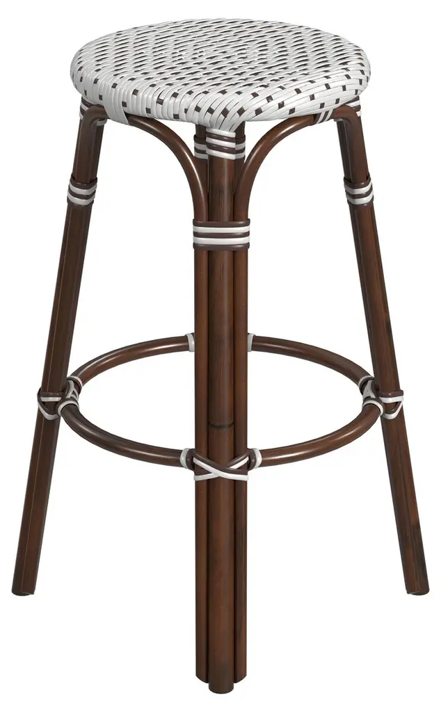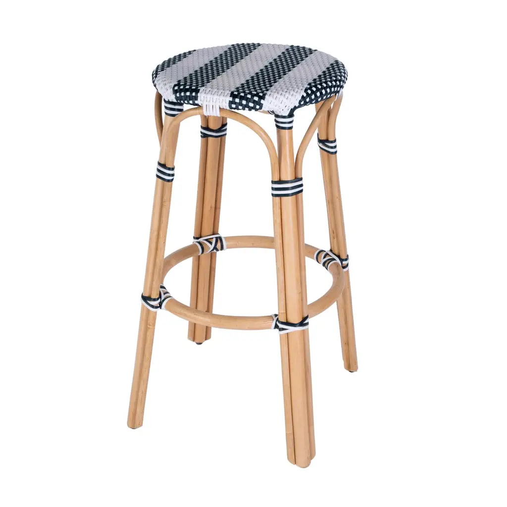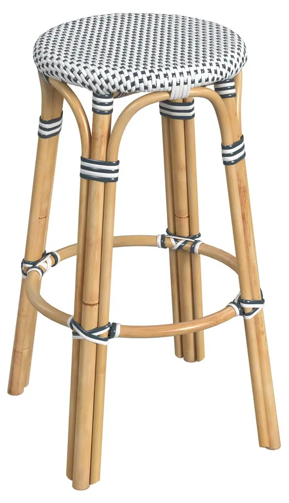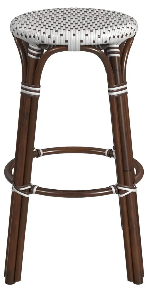 Evoking images of sidewalk tables in the Cote d'Azur, barstools like this will give your kitchen or patio the casual sophistication of a Mediterranean coastal bistro. Expertly crafted from thick bent rattan for superb durability, it features weather resistant woven plastic. This backless barstool is lightweight for easy mobility with comfort to make the space it's in a frequent gathering place.