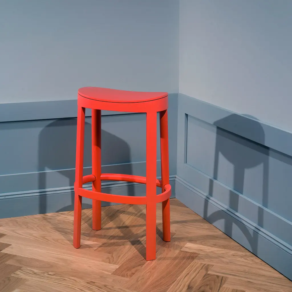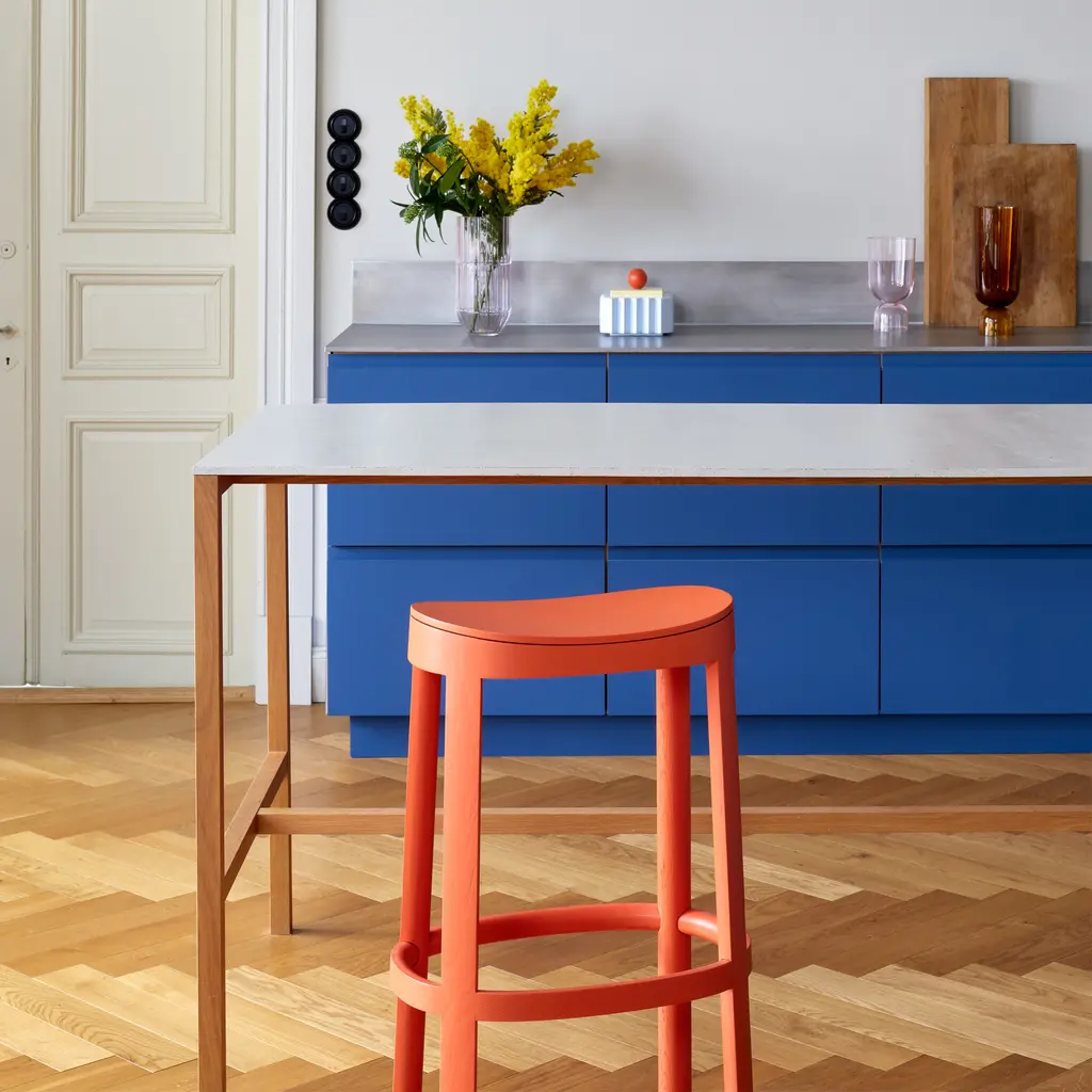 Saku Sysiö drew inspiration for the Lammi bar stool from the place of the same name in southern Finland. Saku has a summer cottage in Lammi and the organic, minimalistic shape of the stool was inspired by a nearby lake. The pond like seat form grows towards the floor with the footrest is like a ring in the water. Lammi is a solid piece of furniture that works well in environments with a softer design language.