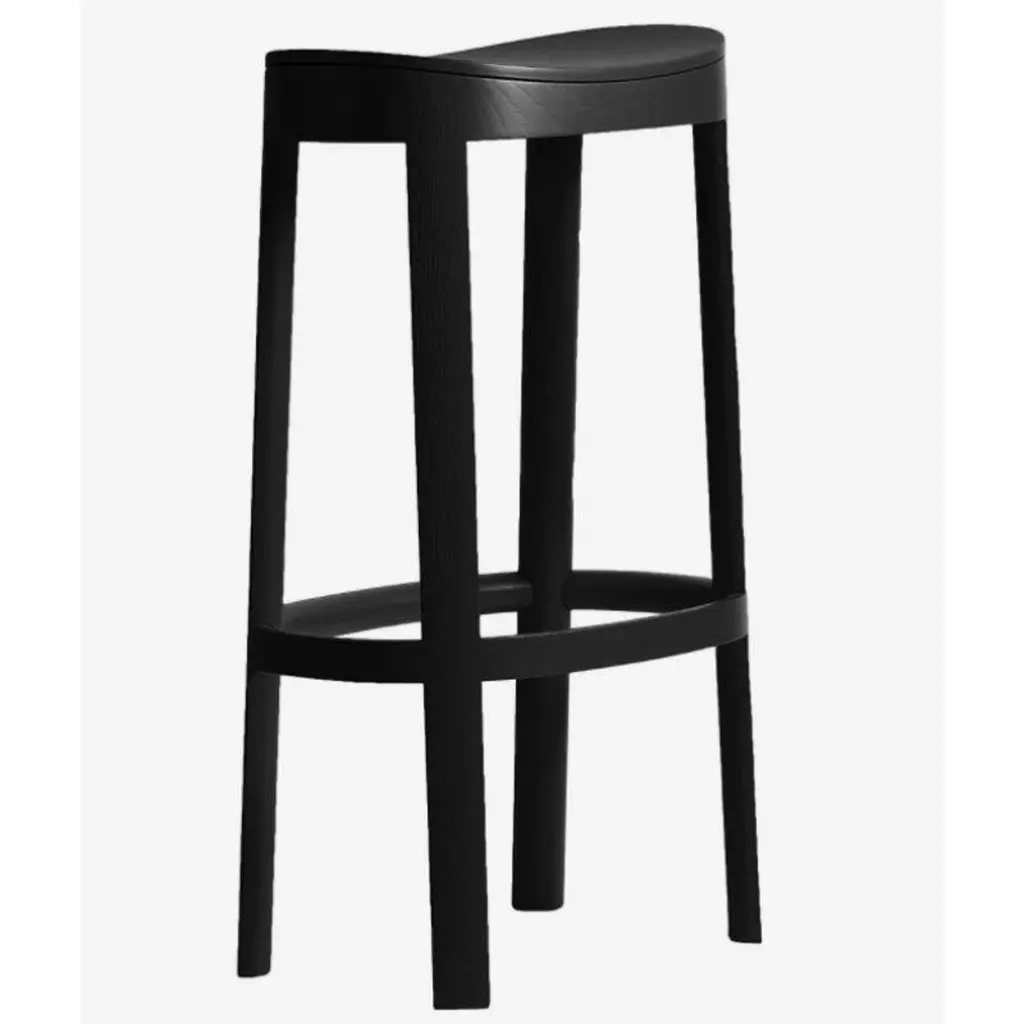 Lammi bar stool, 74 cm, Tall, black by Made By Choice with Saku Sysiö.Dimensions: 47 x 38 x 74 cm.Materials: OakStandard Finishes: Natural Wood / Painted BlackAlso Available: Lammi Bar Stool (66cm) & Custom colors on request. Saku Sysiö drew inspiration for the Lammi bar stool from the place of the same name in southern Finland. Saku has a summer cottage in Lammi and the organic, minimalistic shape of the stool was inspired by a nearby lake. The pond like seat form grows towards the floor with the footrest is like a ring in the water. Lammi is a solid piece of furniture that works well in environments with a softer design language.About Made by Choice: Nordic Happiness. Nordic Happiness is our grand theme and guiding star. Studies show that Nordic people are among the happiest on Earth. Nordic happiness is composed of authentic values and sustainable choices. The vision of Choice is based on the added value of collective creation while promoting sustainable Nordic values through authentic design. Rooted in the traditions of Finnish woodworks, Made by Choice is a creative powerhouse of collaborative thinkers, believers and makers, establishing a global brand for the 21st century. Committed to producing durable, bold and innovative designs, we combine contemporary woodworking methods and modern technology. Halikko is home to our 4000 square metre campus where we turn abstract concepts into tangible objects. Our team in our office in Helsinki coordinates all operations and installations. Made by Choice's agile, purpose driven approach means all new products are developed on demand, for a specific project and need, and carries the authentic story of it's reason of existence. Our products are developed and manufactured at our own factory in south-western Finland by some of the best craftsmen in the world. Choice is inspired by heritage and Nordic urban lifestyle. We are driven to explore the boundaries of our discipline to create new narratives. Choice collaborates with leading designers and ambitious interior architects on site-specific projects to create new urban spaces.Choice was founded by Lasse Laine, Sebastian Jansson and Niclas Ahlström – based on the common vision and mutual values to create a distinctive, value-driven brand and a new design heritage.