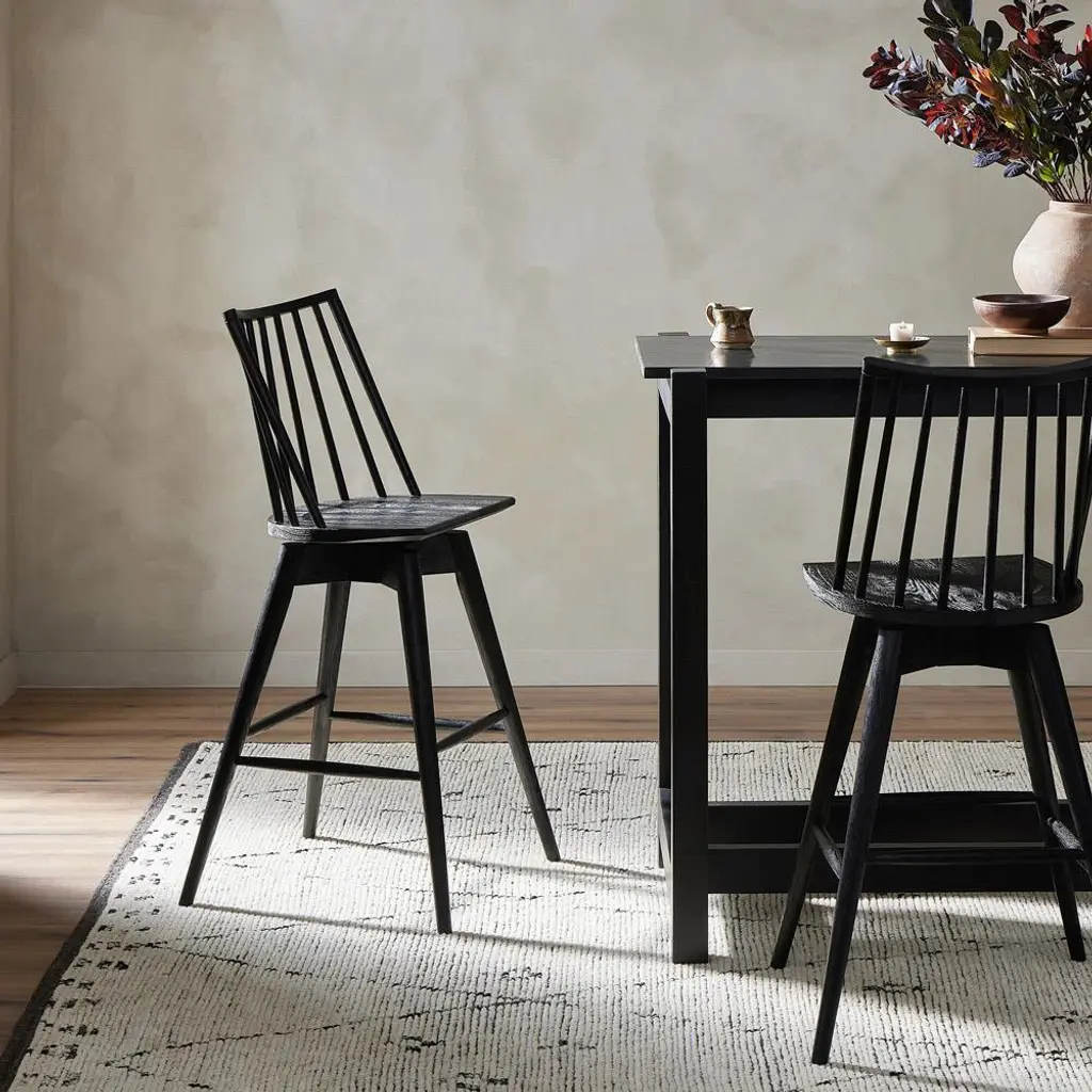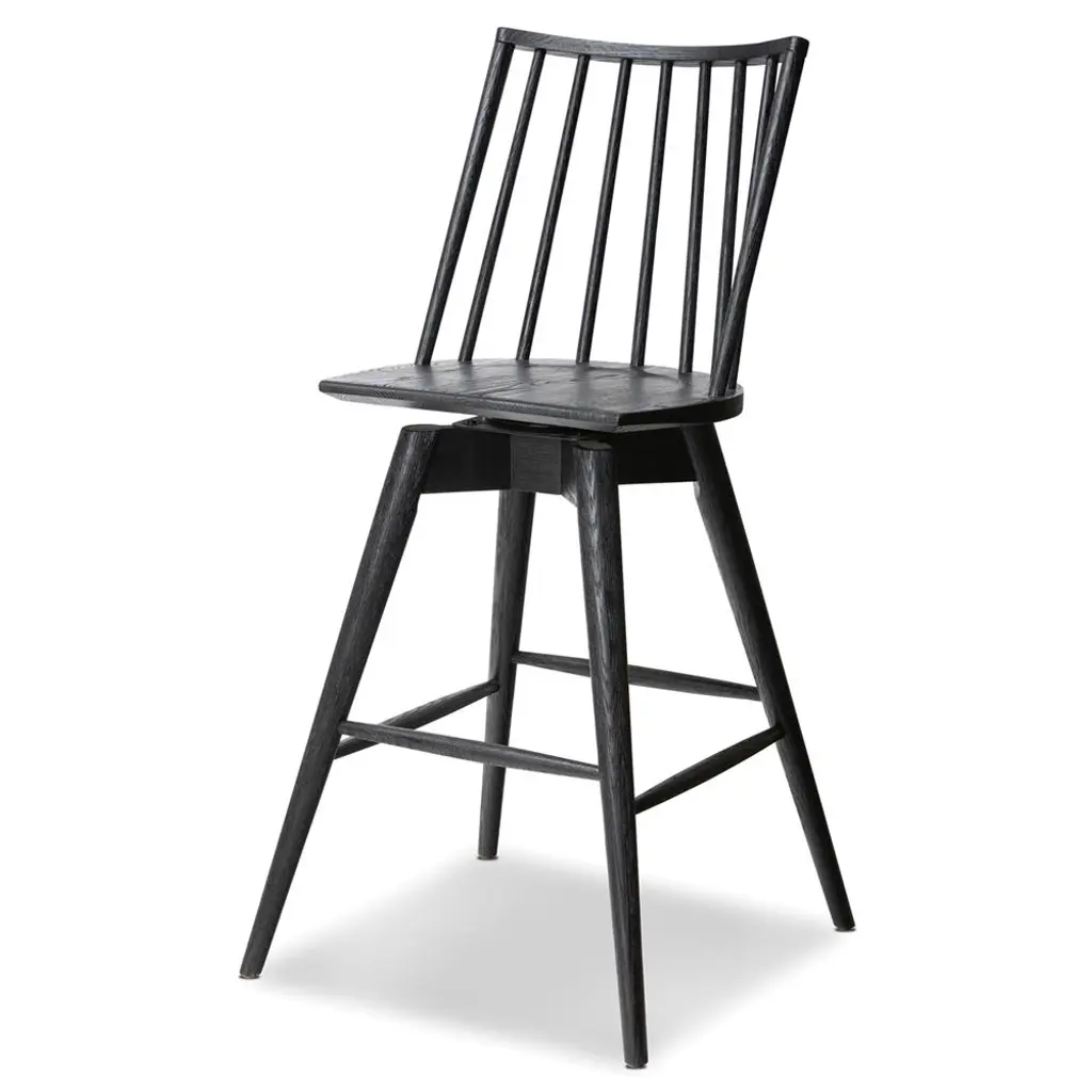 Lara Rustic Lodge Black Oak Swivel Windsor Bar Stool